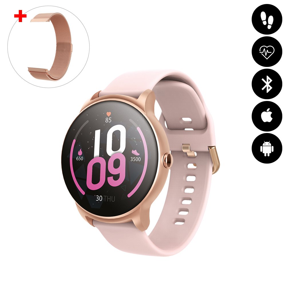 • Montre connectée multi-sport IP67 avec bracelet modifiable (silicone ou métallisé) Rose Gold