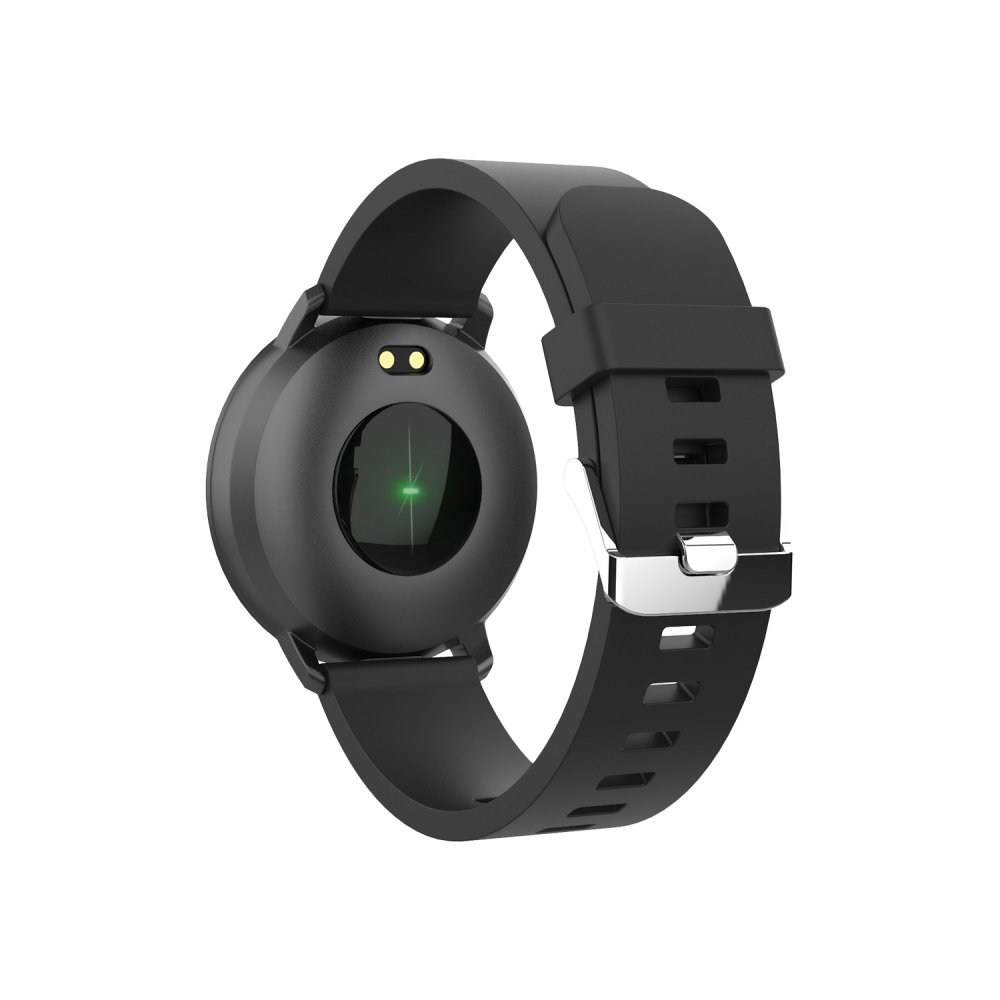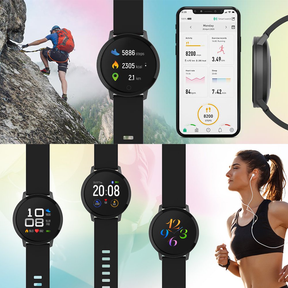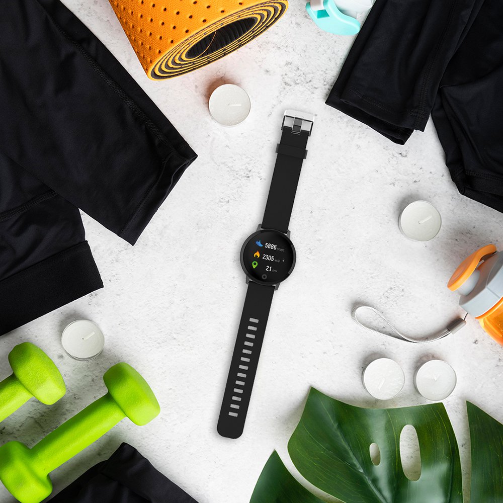 Montre connectée Bluetooth avec historique et suivi des activités sportives, contrôle de la musique IP67 La montre connectée parfaite pour les personnes qui souhaitent un suivi de leurs activités.Avec une batterie longue durée, des fonctionnalités sportives avancées, un moniteur de fréquence cardiaque et une connectivité Bluetooth 5.0 de pointe, vous aurez de nombreuses options pour vous faciliter la vie. Le look de la montre peut être personnalisé en quelques secondes. La montre connectée vous offre un choix de cadrans et le bracelet en silicone confortable. L'enveloppe de la montre est composée de matériaux de haute qualité qui, combinés au respect des exigences de la norme internationale d'étanchéité IP67, garantissent sa durabilité et sa fiabilité.La montre est étanche à la pluie ou aux éclaboussures.Compatibilité: iOS ≥ 8.0; Android ≥ 5.1 Connectivité: Bluetooth 5.0 MCU/Chipset: Pixart PAR2860QN Matériel de boîtier: métal Fonctionnalités: heure, date, marche, course à pied, vélo, escalade, météo, chronomètre, historique des activités, objectifs,modification du cadran de montre, trouver ma montre,trouver mon téléphone, caméra à distance, contrôle dela musique, rappel de boire Étanchéité : IP67 Écran diagonal: 1.3” Résolution d'écran: 240x240 px Contrôle: Tactile Batterie: 155 mAh Li-ion Temps de travail : jusqu'à 10 jours