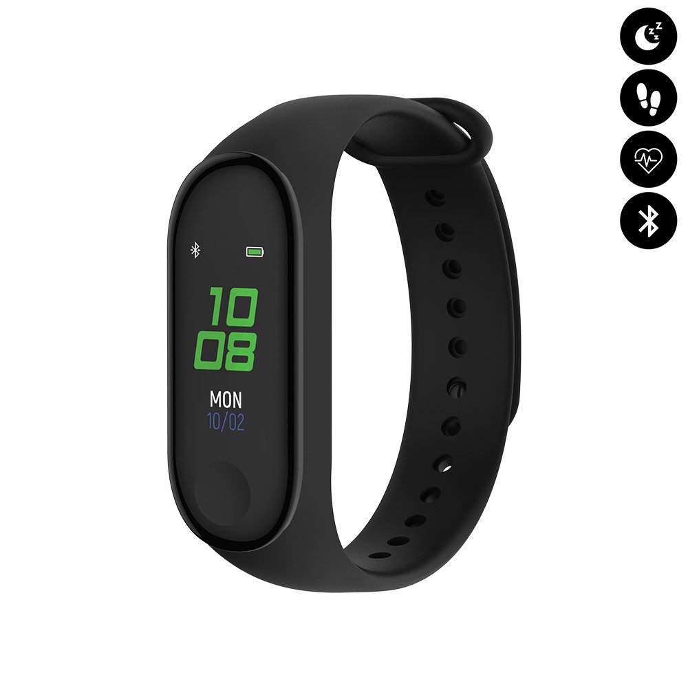 Bracelet connectée Bluetooth avec fréquence cardiaque, surveillance du sommeil, rappel, alarme, suivi d'activités sportives , Ce bracelet va vous faciliter la vie de l'utilisateur au cours de chaque journée dynamique. Les fonctions sportives intégrées et le moniteur de fréquence cardiaque vous permettront d'analyser les résultats de vos entraînements, et les notifications des messagers ou la vérification de la météo vous aideront à organiser vos affaires quotidiennes. La batterie longue durée permet au bracelet de fonctionner jusqu'à 10 jours sans charge, malgré l'écran facile à lire. Le bracelet vous soutiendra pendant l'exercice, analysant vos entraînements dans diverses disciplines - marche, course, vélo ou escalade. Vous pouvez enregistrer les résultats, fixer des objectifs, mesurer les calories brûlées et vérifier votre pouls.Compatibilité: iOS ≥ 10.0; Android ≥ 5.0Connectivité: Bluetooth 5.0MCU/Chipset: PAR2860QNMatériel de boîtier: plastiqueFonctionnalités: heure, date, marche, course à pied, cyclisme,randonnée, fréquence cardiaque, podomètre,compteur de calories brûlées, distance, notification, météo, surveillance du sommeil, historique des activités, rappel de manque d'activité, rappel de boire, alarme, réveil intelligent, objectifs, modification du cadran de montre, trouver mamontre, trouver mon téléphoneÉtanchéité: IP65Écran diagonal: 0.96Résolution d'écran: 80 x 160 pxContrôle: Bouton tactileBatterie: 90 mAh Li-ionTemps de travail: jusqu'à 10 jours