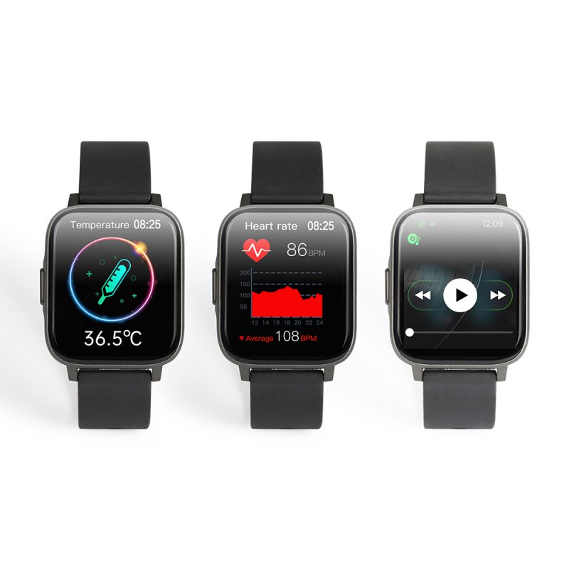 • > High Tech>Objets connectés>Montres>Montre connectée Bluetooth fréquence cardiaque, mesure de la température, suivi d'activités, analyse du sommeil, podomètre Noir