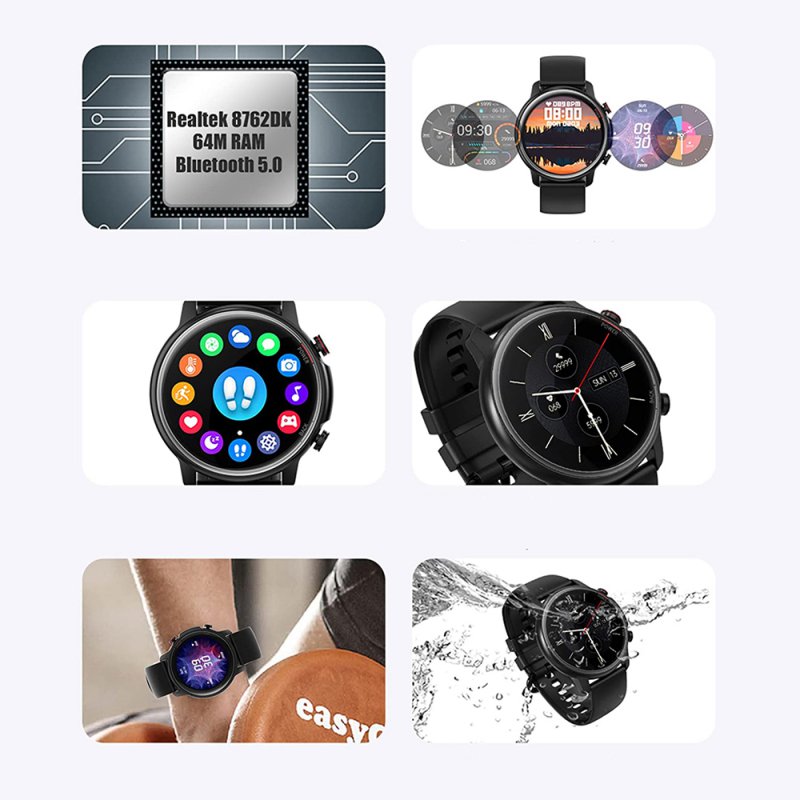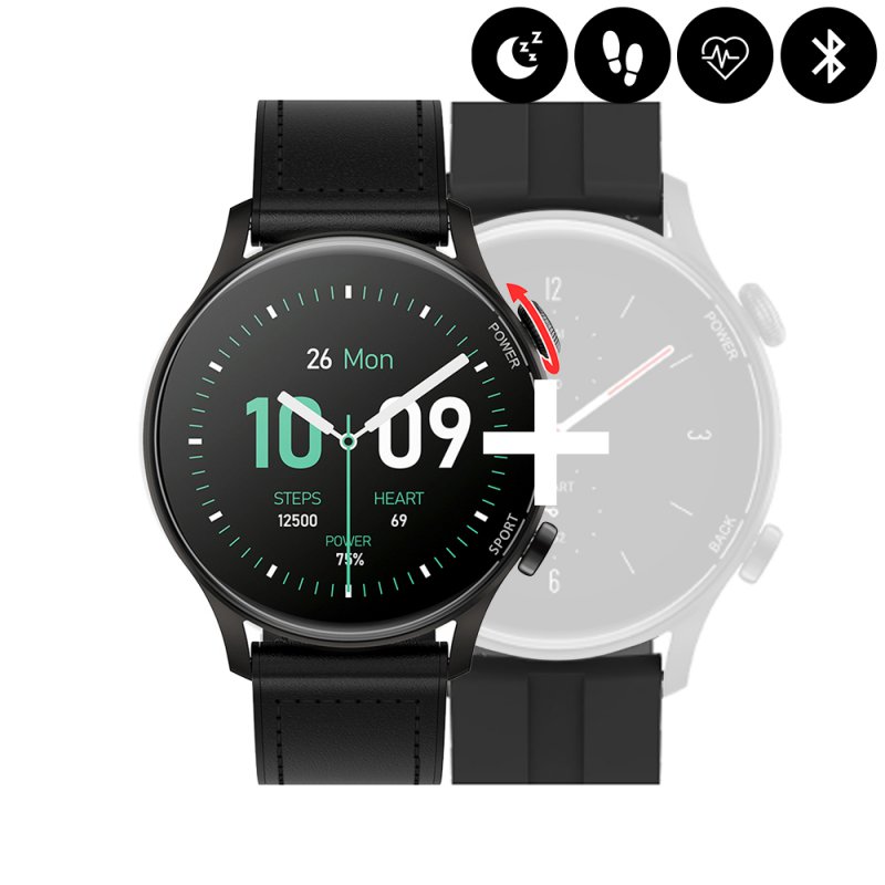 Montre connectée Bluetooth avec moniteur de fréquence cardiaque, tensiomètre, podomètre, compteur de calories,mémoire musicale - NoirLa montre connectée parfaite pour les personnes qui souhaitent un suivi de leurs activités.Fonctionnalités : heure, date, horaire, oxygénation du sang, moniteur de fréquence cardiaque, tensiomètre, podomètre, mesure de distance, compteur de calories, mémoire musicale (100 chansons), appels téléphoniques BT, répertoire téléphonique (jusqu’à 20 contacts), historique des appels, 9 sport modes (course, marche, vélo, escalade,course sur tapis roulant, marche sur tapis roulant, vélo stationnaire, escalade, football, autres entraînements),définition d’objectifs, historique d’activité, notifications,mode Ne pas déranger, surveillance du sommeil, caméra à distance, rappel d’inactivité, alarme horloge, contrôle de la musique, changer le visage de l’écran, trouver le téléphone, chronomètre, minuterie, rétroéclairage de l’écran avec le mouvement du poignet, réglage de la luminosité de l’écran, réglage des vibrations, réglage du volume.....La montre a une étanchéité IP68 soit Protégé contre les poussières et autres résidus microscopiques et Matériel submersible dans des conditions spécifiées en durée et en pression (immersion prolongée)4 au-delà de 1 m. Normalement, cela signifie que l'équipement est hermétiquement fermé, cependant, avec certains types de matériel, cela peut signifier que l'eau peut pénétrer, mais sans produire d'effets nuisibles. Protection contre la submersion durant 1 heure.Avec une batterie longue durée, des fonctionnalités sportives avancées, un moniteur de fréquence cardiaque et une connectivité Bluetooth 5.0 de pointe, vous aurez de nombreuses options pour vous faciliter la vie. Le look de la montre peut être personnalisé en quelques secondes. La montre connectée vous offre un choix de cadrans et le bracelet en silicone confortable. L'enveloppe de la montre est composée de matériaux de haute qualité qui garantissent sa durabilité et sa fiabilité.Compatibilité: iOS ≥ 8.0; Android ≥ 5.1 Connectivité: Bluetooth 5.0 MCU/Chipset: Pixart PAR2860QN Matériel de boîtier: métalAvec bracelet supplémentaire offert pour changer de style