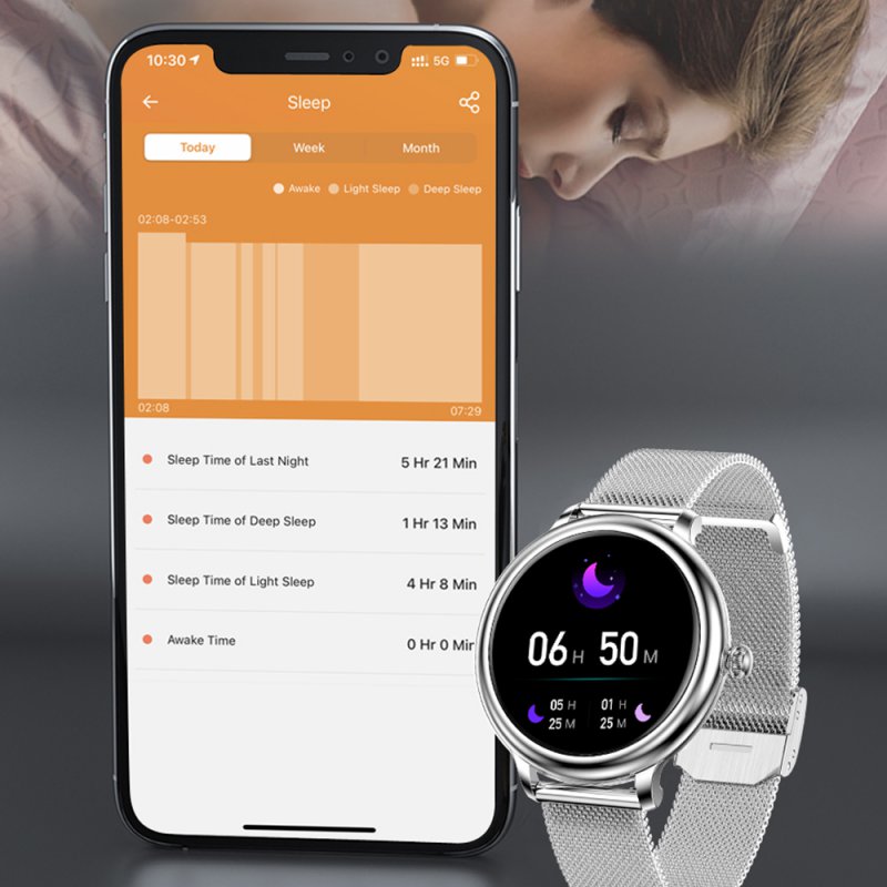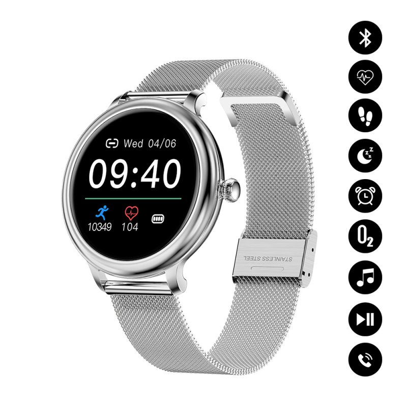 • Montre connectée féminine avec pression artérielle - Argent