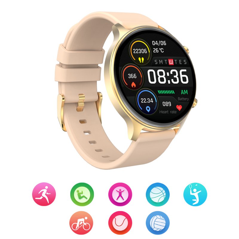 • Montre connectée féminine IP68 avec tracker de sommeil - ecrand diamant Or