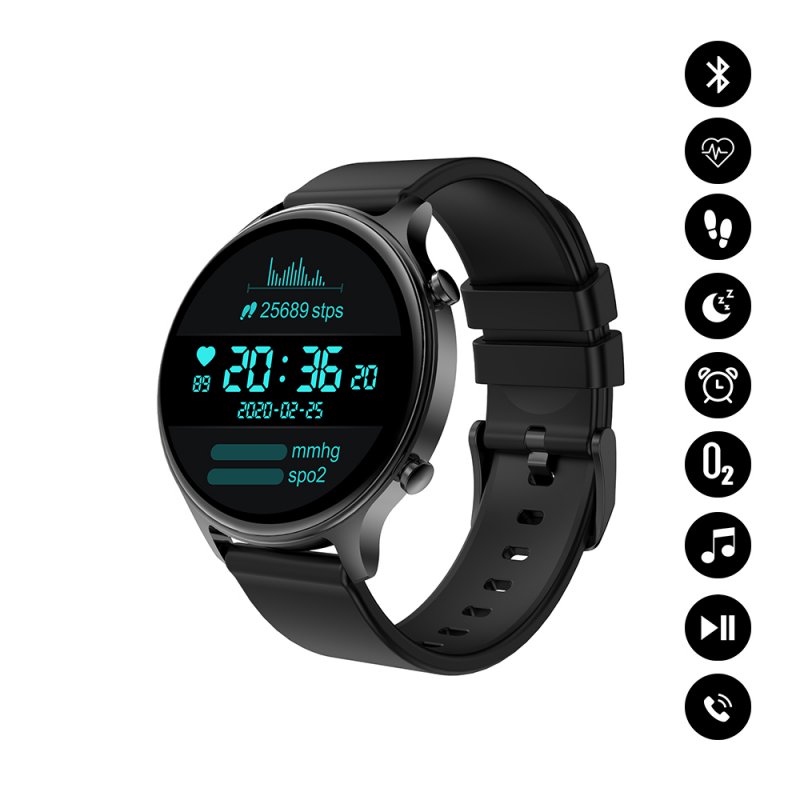 • Montre connectée bluetooth avec capteur cardiaque Noir