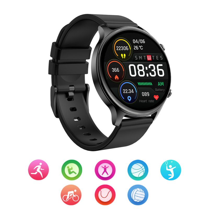Montre connectée Bluetooth: micro pour appels téléphonique, assistant vocal, musique, mesure de fréquence cardiaque, pression artérielle, oxygène, moniteur d'activité physiqueFonctions principales : personnalisation du cadran via la proposition des fond inclus ou via votre album photo, affichage des différentes fonctions de 3 façons différentes, assistant vocal à utiliser pour passer vos appels, déclancher la musique, vérifier la météo.... mode multisports, affichage de la météo, affichage de l'heure, caméra à distance, lecture de musique via la montre connectée, paramètres du mode ne pas déranger, répondre aux appels via votre montre et discuter tout en ayant les mains libérées, passer des appels....Enregistrement des exercices : comptage des pas, temps d'exercice, kilométrage d'exercice, nombre de calories brûlées, surveillance du sommeilSurveillance de la santé: mesure de la fréquence cardiaque, mesure de la pression artérielle, test d'oxygène dans le sang, surveillance du sommeil avec un enregistrement complet et analyse de la qualité de votre sommeil.IP67 waterproof ce qui veut dire que vous pouvez l'utiliser pour vous lavez les mains, sous la pluie ou pour natation à moins d'un mètre durant 30 min -1h.Multi - langues comme anglais, français, protugais , espagnol...Rappel de notifications, d'alarme, de sédentarité ...Mode Multi-sports il y a 24 modes sportifs professionnels et 10 modes sportifs grand public sont présents dans le système comme la course, le basket, les abdos, le badminton,le vélo, le tennis ....Ce mode permet de calculer le nombre de pas, les calories brûlées, la fréquence cardiaque, enregistre les données de votre corps, les analyse, calculer le temps d'exercice et le kilométrage, et améliorer efficacement le niveau d'exercice...Prise de photo à distance grâce à la montre qui fonctionne comme une télécommande Données d'exercice: transfert vers APP via BluetoothDonnées de santé: transfert vers APP via BluetoothRappel : rappel d'alarme personnalisé, rappel de sédentarité, rappel d'appel, notifications d'information (SMS/Skype/Facebook/Twitter/WhatsApp, autres APPLICATION: Super BandSpécificationsPuce: + BK3266Taille de la mémoire: 64 moTaille (D * H)(mm): 49.5*44*11.5MMBouton: bouton marche/arrêt, bouton arrièreBatterie: 180mAhType de LCD: IPSTaille: écran circulaire complet 1.28Résolution: 240*240Méthode des boutons: touche complète + gestes + boutons physiquesMoteur de VibrationHaut-parleur uniqueFréquence cardiaqueOxygène du sangMéthode de charge: charge magnétiqueBluetooth: 5.0 + 5.0 double modeCoque: alliage d'aluminiumBatterie intégrée: tension: 4.2vMulti-langues : anglais (par défaut), français, allemand, portugais, espagnol, turc, polonais......