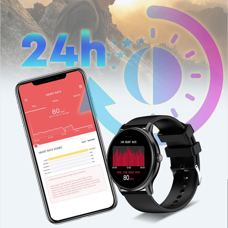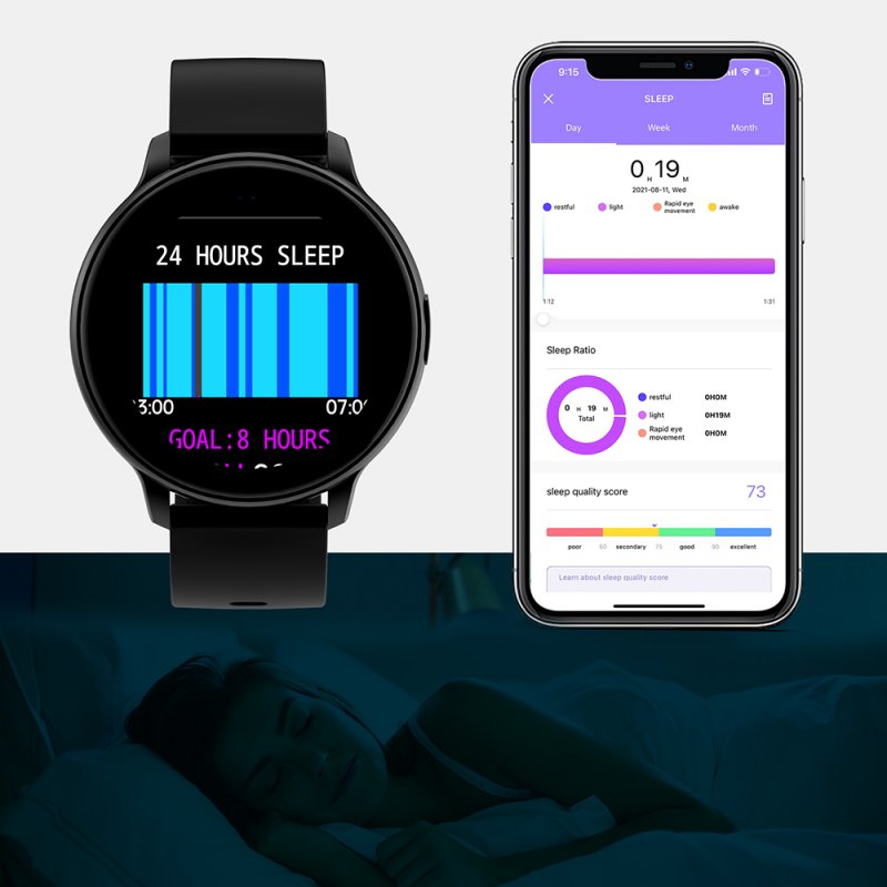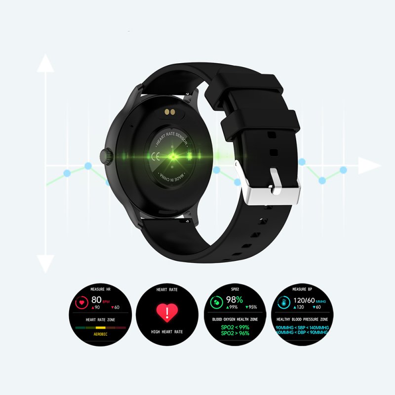 Montre connectée Bluetooth : moniteur de fréquence cardiaque, suivi du sommeil, notification, suivi d'activitéFonctions : Répondre, rejeter vos appels directement via la montre grâce à la présence du microcontrôle de la musiquemesure de fréquence cardiaque instantanée, tension artérielle, suivi du sommeil, suivi d'exercice physique . Vous pouvez suivre l'historique des mesures directement sur l'applicationRéglage de l'alarme : rappel de vibration (3 groupes)Multi-sports comme la coursen le velo, badmonton, et autres Vous pouvez syncrhoniser vos données pour suivre vos informationsPersonnalisation de l'écranContrôle de la musique, la caméra de votre téléphone une fois la connextion établie entre la montre et votre téléphoneEtanchéité IP67Réception des notifications comme sur votre smartphoneSurveillance du sommeil et analyse des donnéesDéfinition de l'objectif de mouvement : définissez le nombre de pas cible quotidien Langues prises en charge : anglais, allemand, espagnol, japonais, français, portugais....Caractéristiques : étanche, surveillance du sommeil, moniteur de fréquence cardiaqueAPP: DAFITMatériau : ABSPuce de contrôle principale : 5515 + AC6963ACapteur de fréquence cardiaque : HRS3300Capteur d'accélération : SC7A20Écran : 1,28 pouces, 240 x 240 Full Fit Full TouchBatterie : batterie rechargeable intégrée de 200 mAh (incluse)
