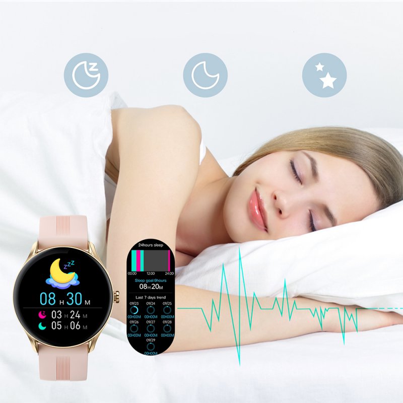 • Montre connectée féminine IP68 avec tracker de sommeil - ecrand diamant Or
