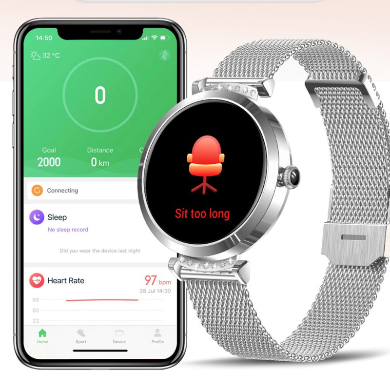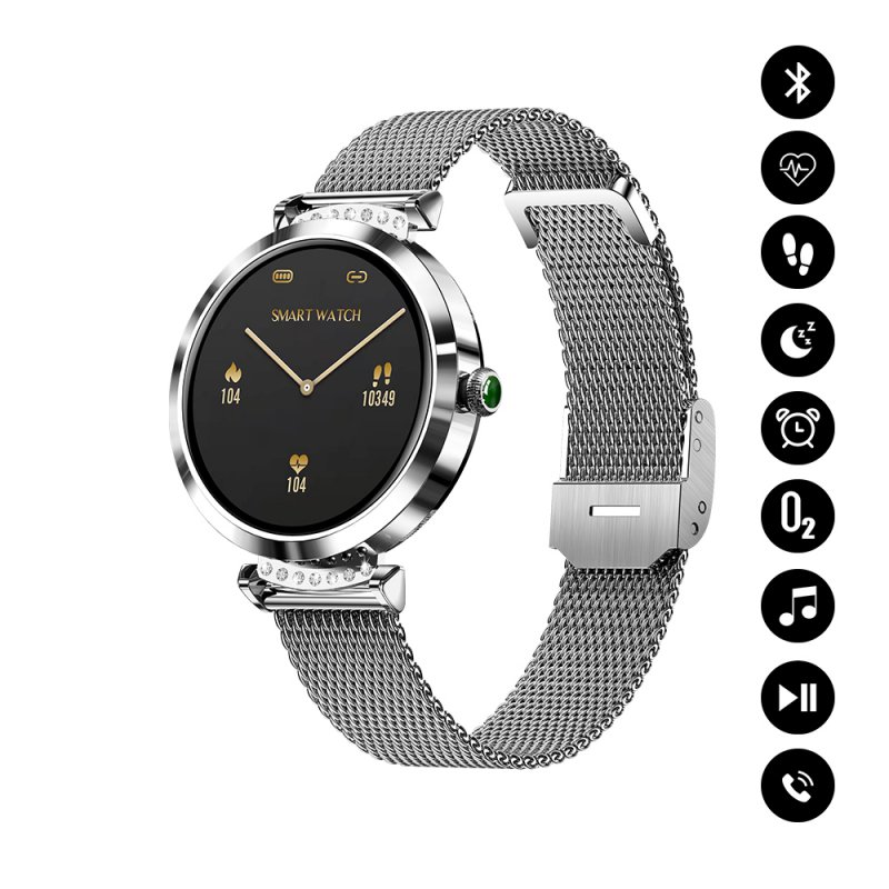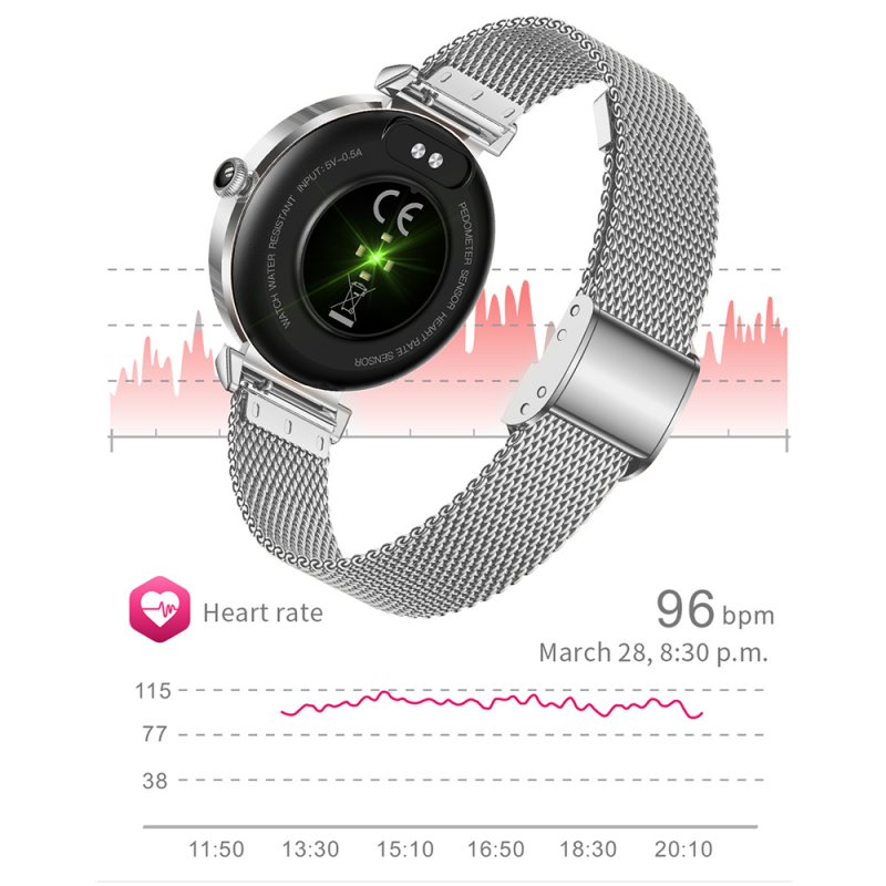• Montre connectée féminine avec moniteur de fréquence cardiaque - Argent