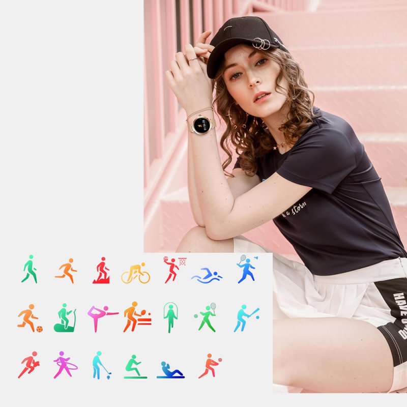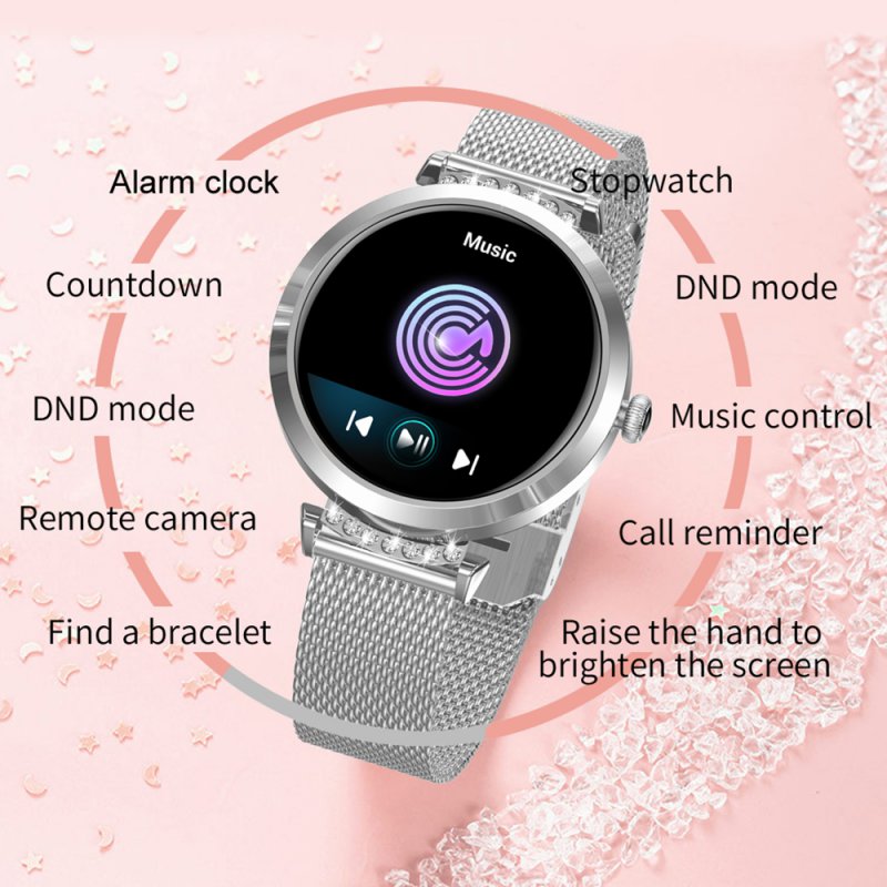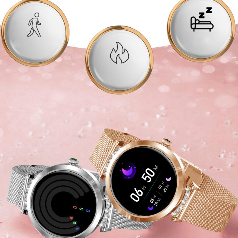 • Montre connectée féminine IP68 avec tracker de sommeil - ecrand diamant Or