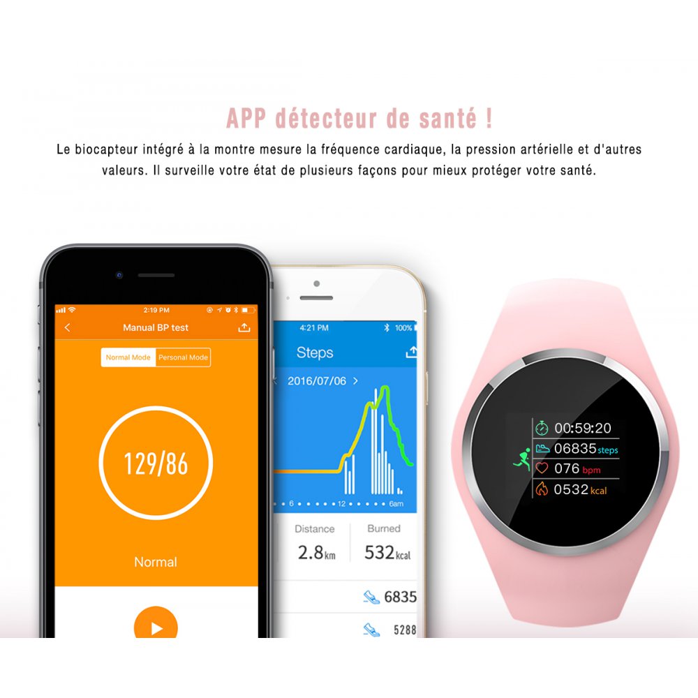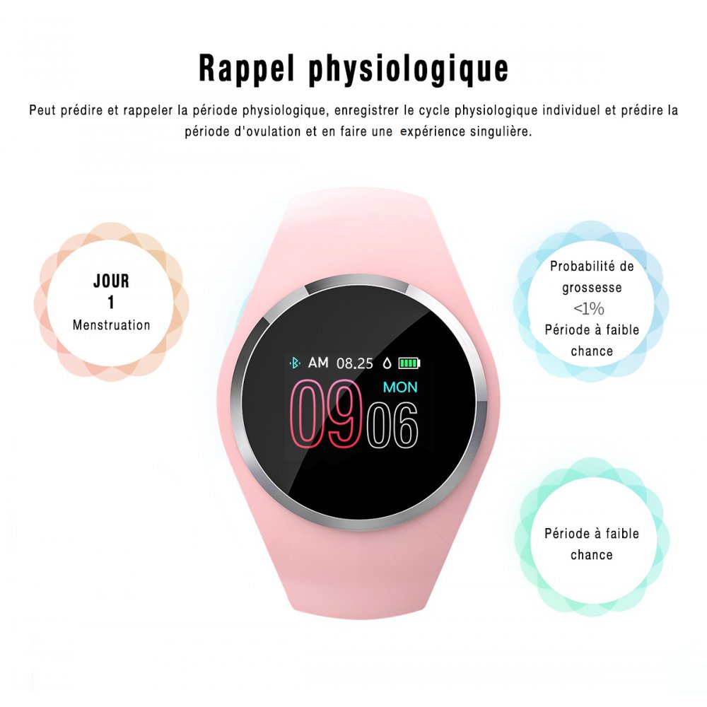 Montre connectée féminie , un look girly des couleurs douces , et des fonctionnalités techniques au top des tendances.