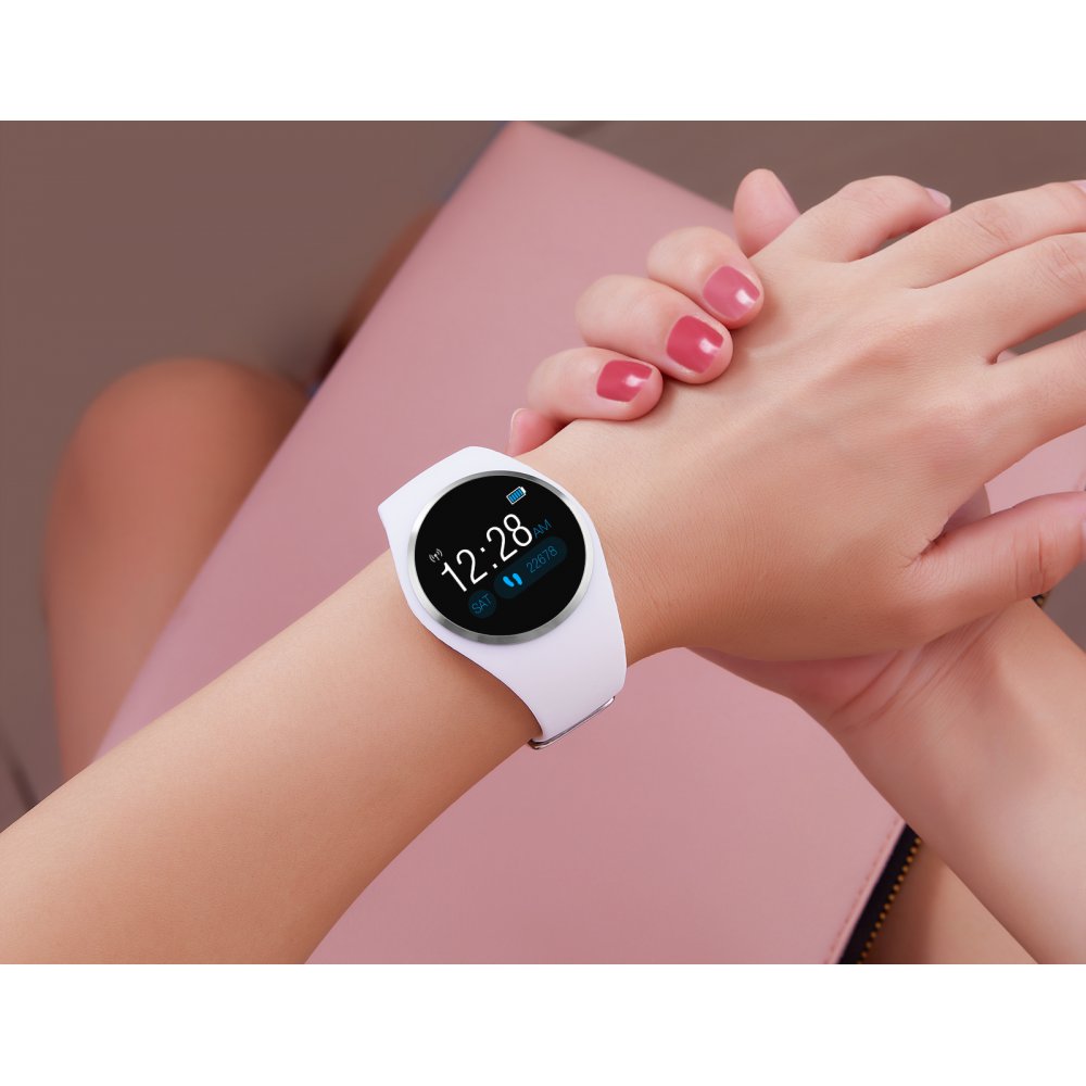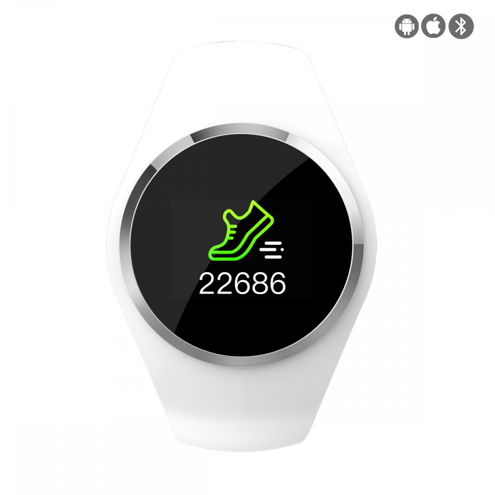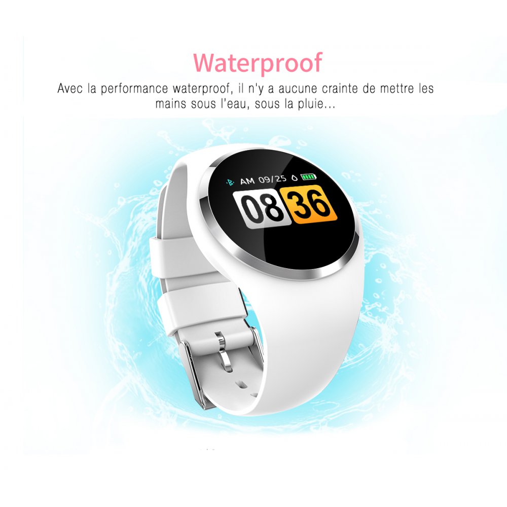 • > High Tech>Objets connectés>Montres>Montre connectée avec suivi d'activités compatible iOs et Android - Blanche