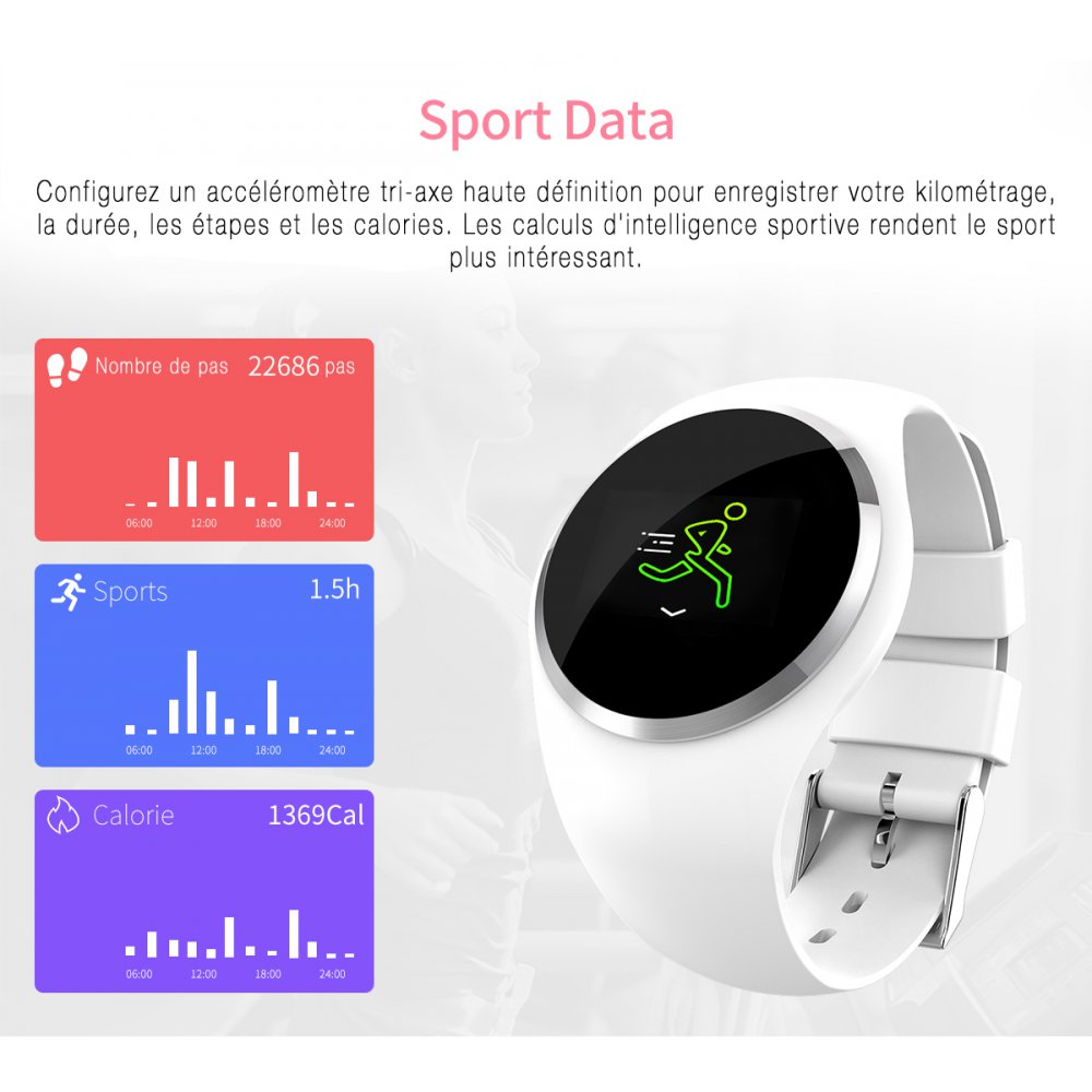 • Montre connectée féminine avec pression artérielle - Argent