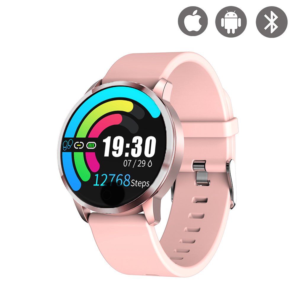 Montre IP67 connectée bluetooth multifonctions Rose Gold.
