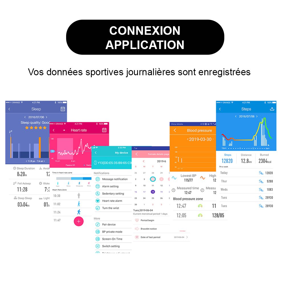 Dotée de la dernière version bluetooth, cette montre permet d’enregistrer de nombreuses données que vous pourrez synchroniser via une application en téléchargement gratuit.