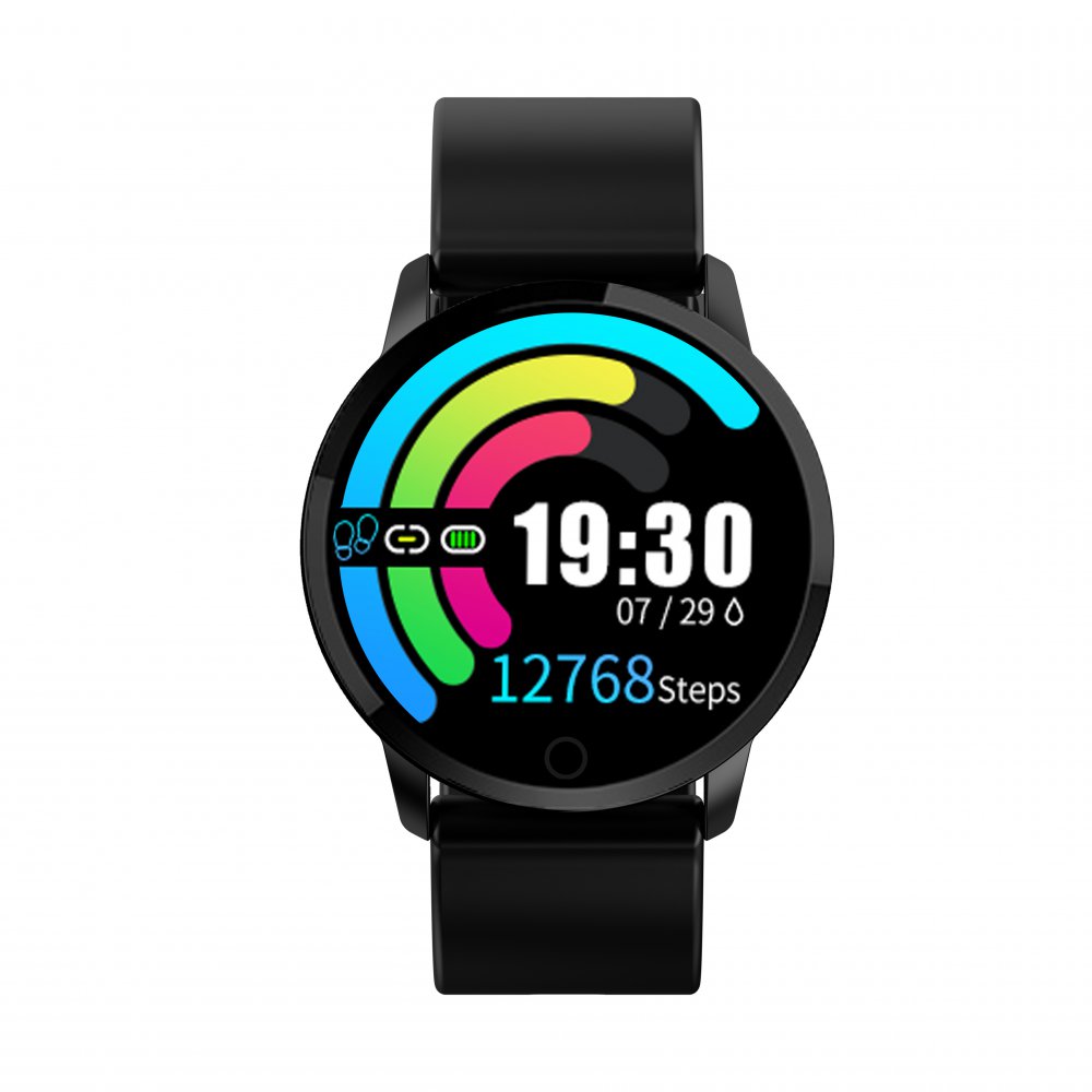 • Montre connectée multi-sport IP67 avec bracelet modifiable (silicone ou métallisé) Noir