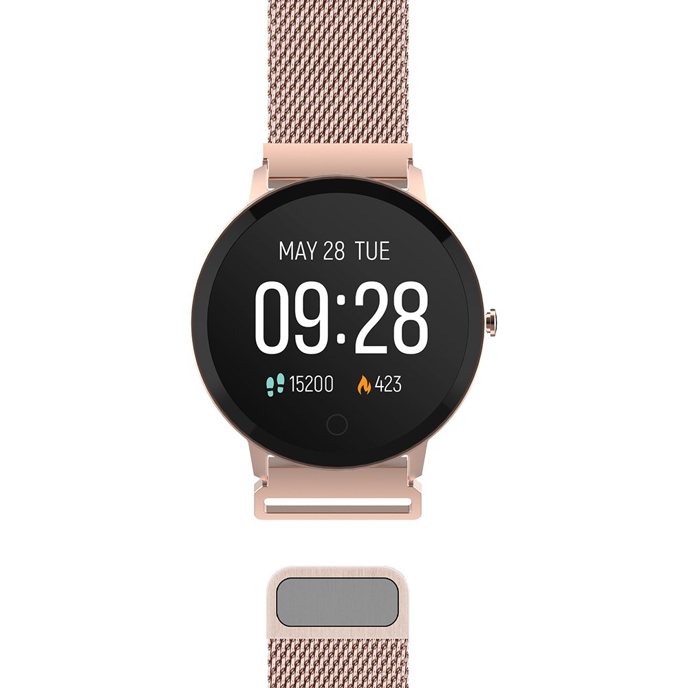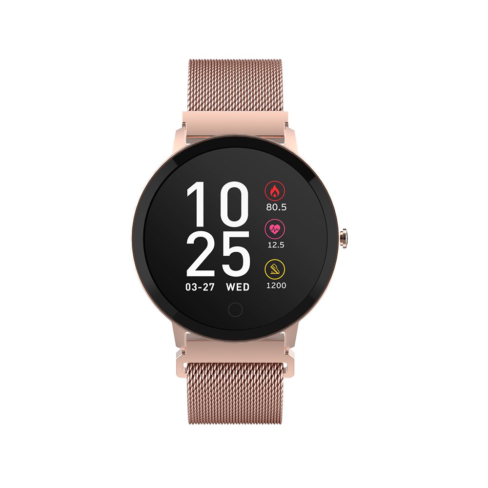 Montre connectée et design avec son bracelet en silicone assorti à l’écran.Cette montre devient un gadget incontournable à avoir en particulier pour tous les amateurs de mode de vie active afin de permettre de suivre l’activité physique tel que la course multisport, l’escalade, le vélo, le tapis de course, la marche. En effet vous pouvez suivre votre rythme cardiaque, le nombre de pas, la distance parcourue, le nombre de calories… tout en recevant vos notificationsCadran entièrement métallique de 1.3 pouces, écran tactile, Étanchéité IP67 à savoir étanche à la poussière et à l’immersion temporaire, Écran tactile de couleur et moniteur de fréquence cardiaque intégré, style d’affichage modifiable, sangle remplaçable (mode sport avec le bracelet en silicone, mode casual avec le bracelet métallique). Batterie : 180 mAh temps de charge : 2h Temps de travail : env 8 jours Bluetooth 4.2