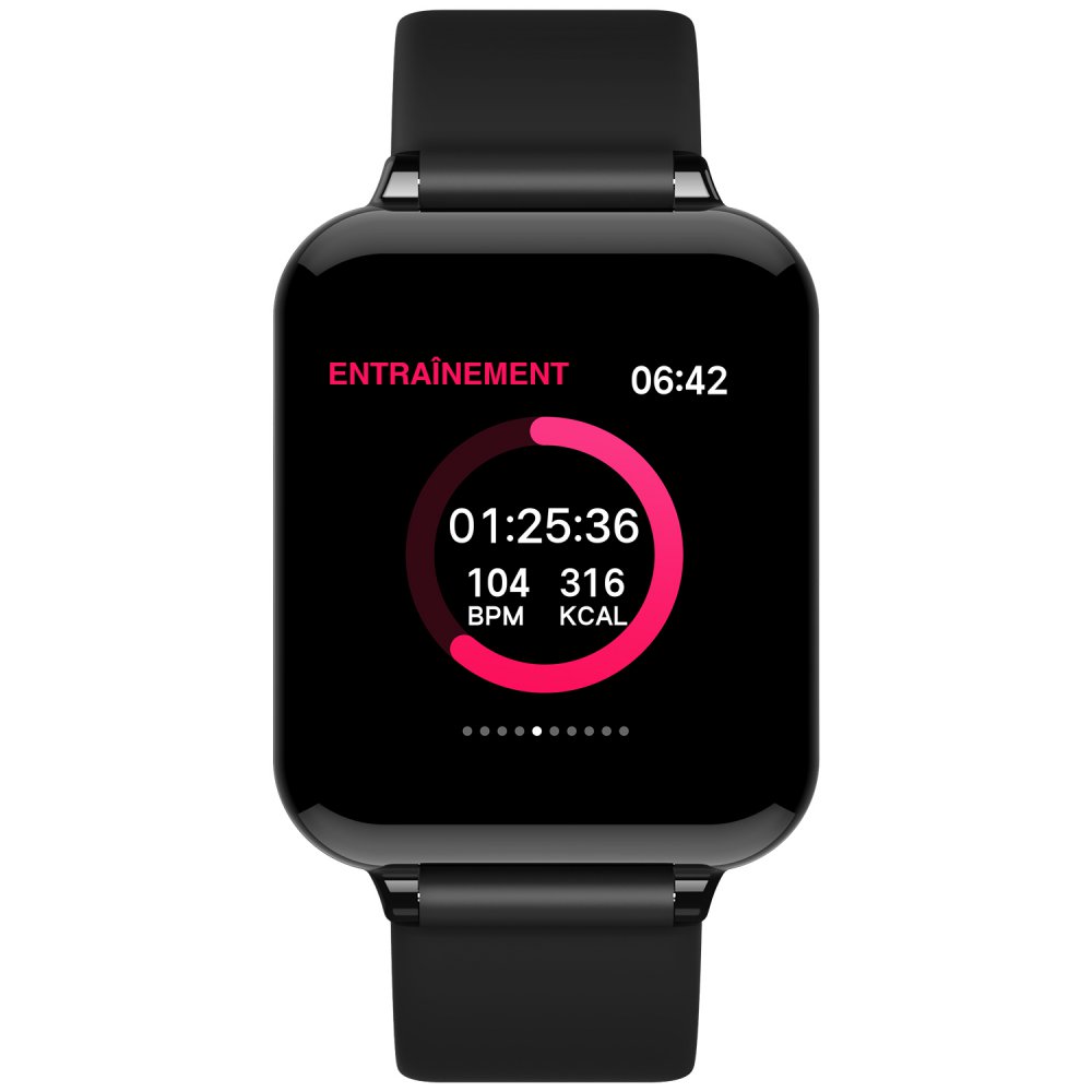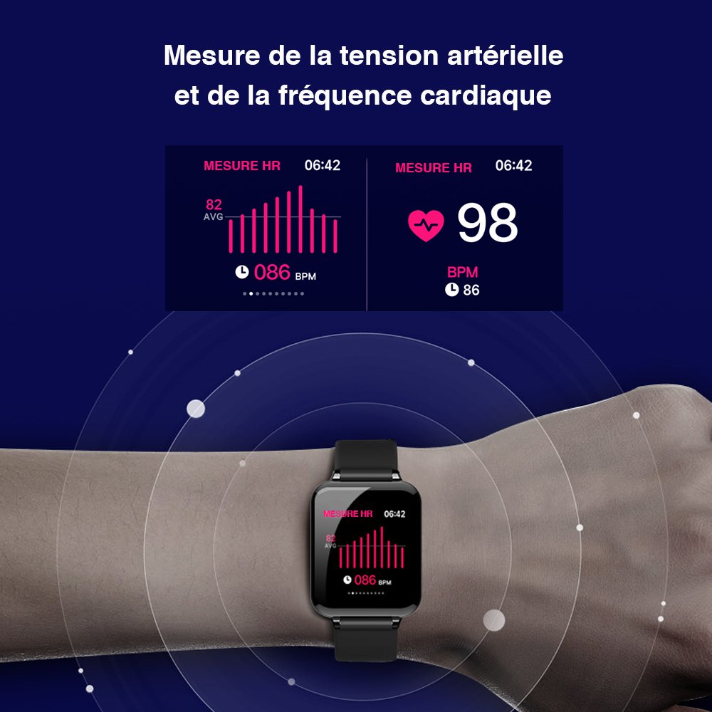 Montre connectée bluetooth avec capteur cardiaque noir.