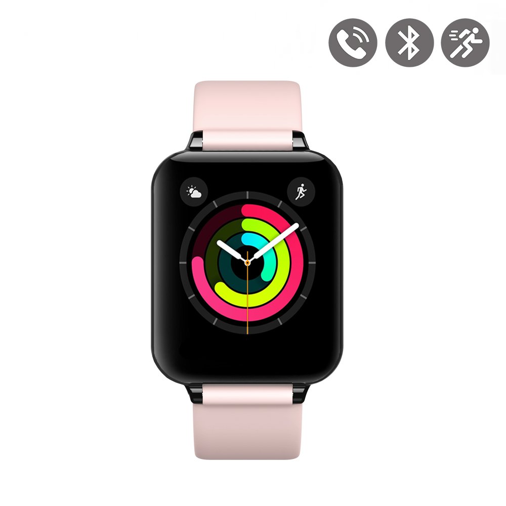 Montre connectée bluetooth avec capteur cardiaque rose.