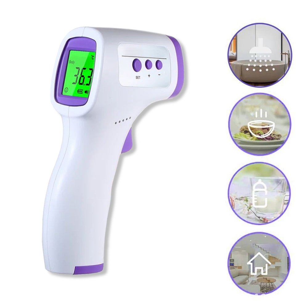 Thermomètre Frontal Infrarouge Numérique Sans Contact avec écran LCD Numérique Ce thermomètre vous permet de prendre la température rapidement, facilement et sans entrer en contact physique direct avec la personne grâce à la technologie infrarouge. Chez vous ou sur votre lieu de travail, vous pouvez respecter les mesures de précaution en appuyant simplement sur un bouton.Une distance de 5 à 8 cm rend le processus de mesure plus sécuritaire.Ce thermomètre peut être utilisé en Celsius ou en Fahrenheit.Rapidement, le thermomètre fournit des données précises en temps réel. Sur l'écran apparaîtra la température corporelle détectée. Son écran LCD avec LED permet une utilisation même dans l'obscurité. Sans aucune opération, le thermomètre sans contact frontal s'éteint automatiquement après environ 20 secondes, ce qui joue un rôle de faible consommation d'énergie.Le système de reconnaissance vous averti visuellement et de manière sonore s'il a détecté un excès de température dangereux: vert pour une température normale, orange pour une fièvre légère et rouge pour une fièvre forte.Attention: le résultat obtenu par l'appareil ne doit jamais remplacer le diagnostic d'un médecin.CaractéristiquesPlage de mesure: 32 - 42,9 ° C / 89,6 - 109,2 ° F.Portée de mesure: 3 à 5 cm.Précision: ± 0,2 ° C.Mesure rapide en moins d'une secondePlages de température:- Température normale: 32 - 37,3 ° C.- Fièvre légère: 37,4 - 38 ° C.- Fièvre forte: 38 à 42.9 ° CArrêt automatique après 20 secondes.Tension: DC3V.Alimentation: 2 piles AAA (non incluses).