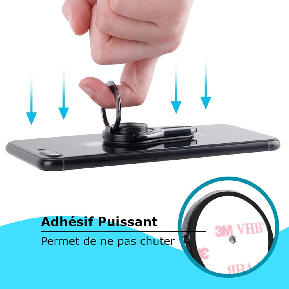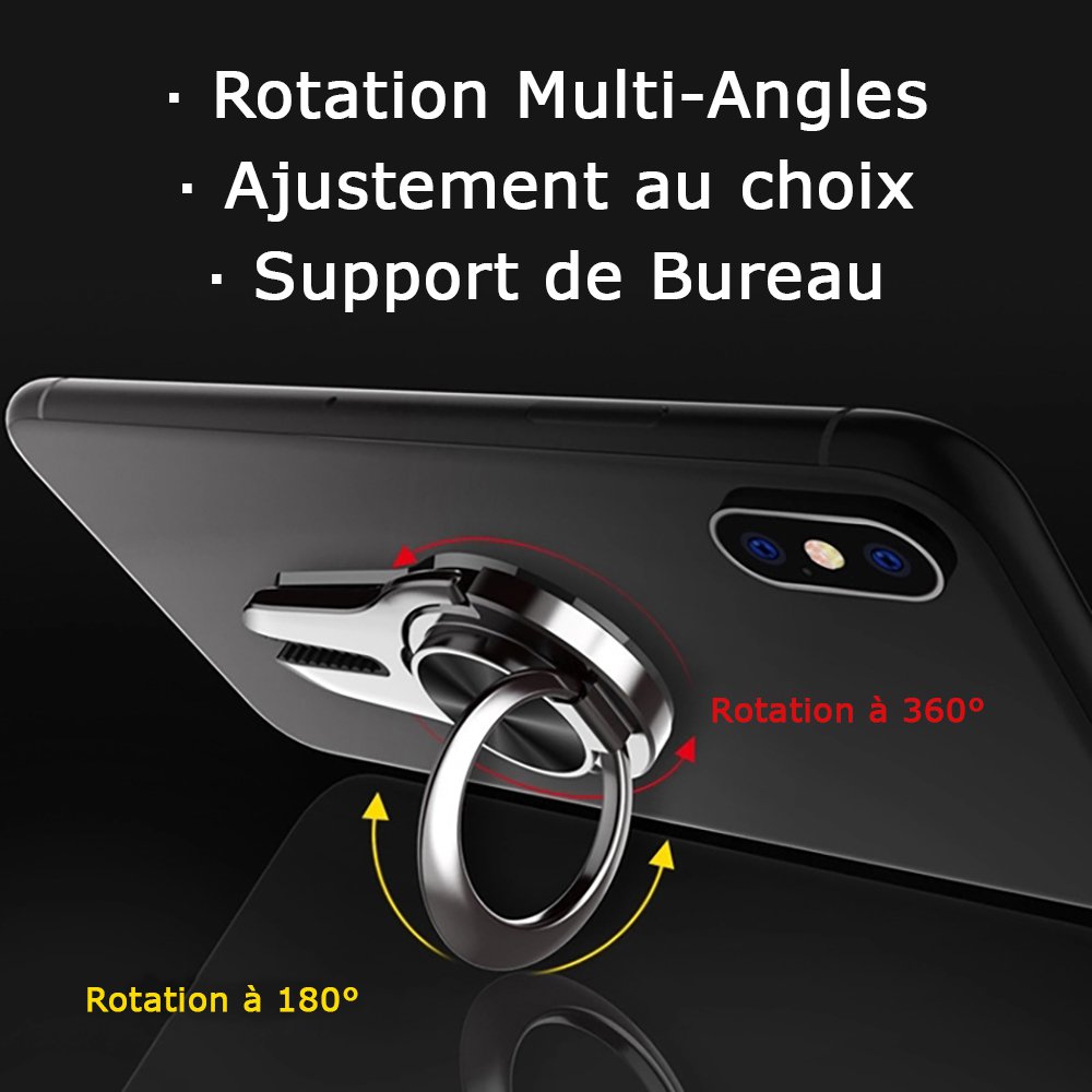 Support anneau rotatif 360° 2 en 1 support voiture & anneau - noir.