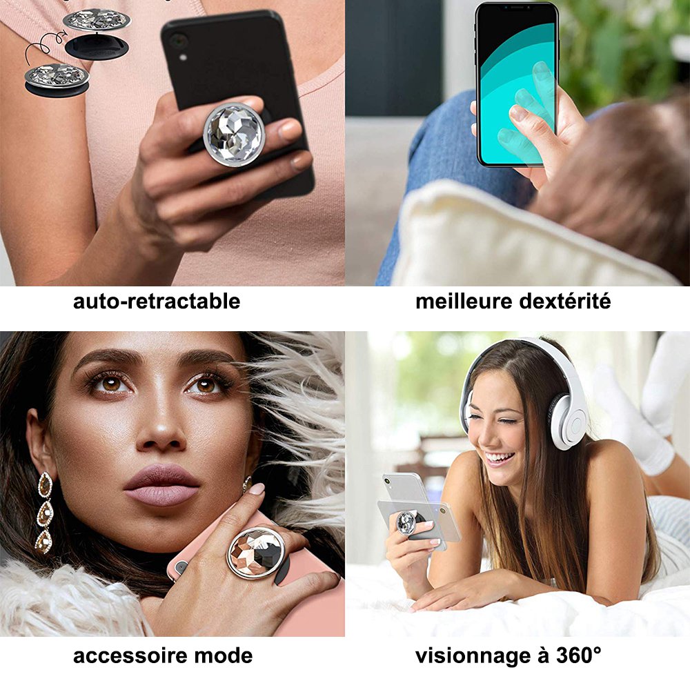 Ces poignées de téléphone brevetées stabilisent votre téléphone pendant les prises maladroites et garantissent une prise sûre sur n'importe quel appareil sans crainte de la chute redoutée ou d'un écran fissuré.