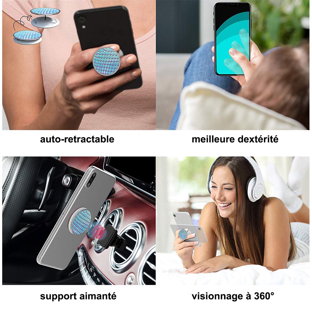 Ajoutez-le sur votre téléphone pour une visualisation verticale et horizontale des supports avec un support de verrouillage grâce à un système breveté qui vous permet de poser votre smartphone dans 4 directions.