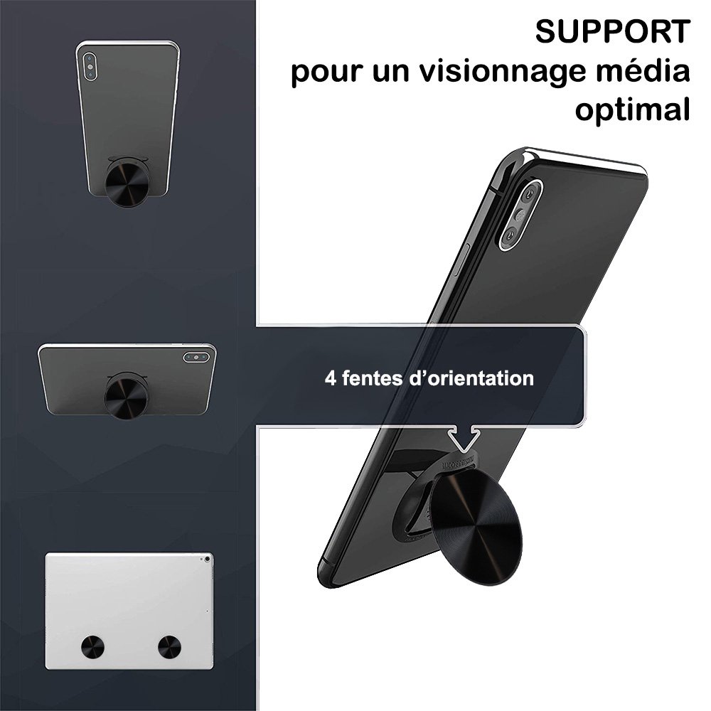 Ajoutez-le sur votre téléphone pour une visualisation verticale et horizontale des supports avec un support de verrouillage grâce à un système breveté qui vous permet de poser votre smartphone dans 4 directions.