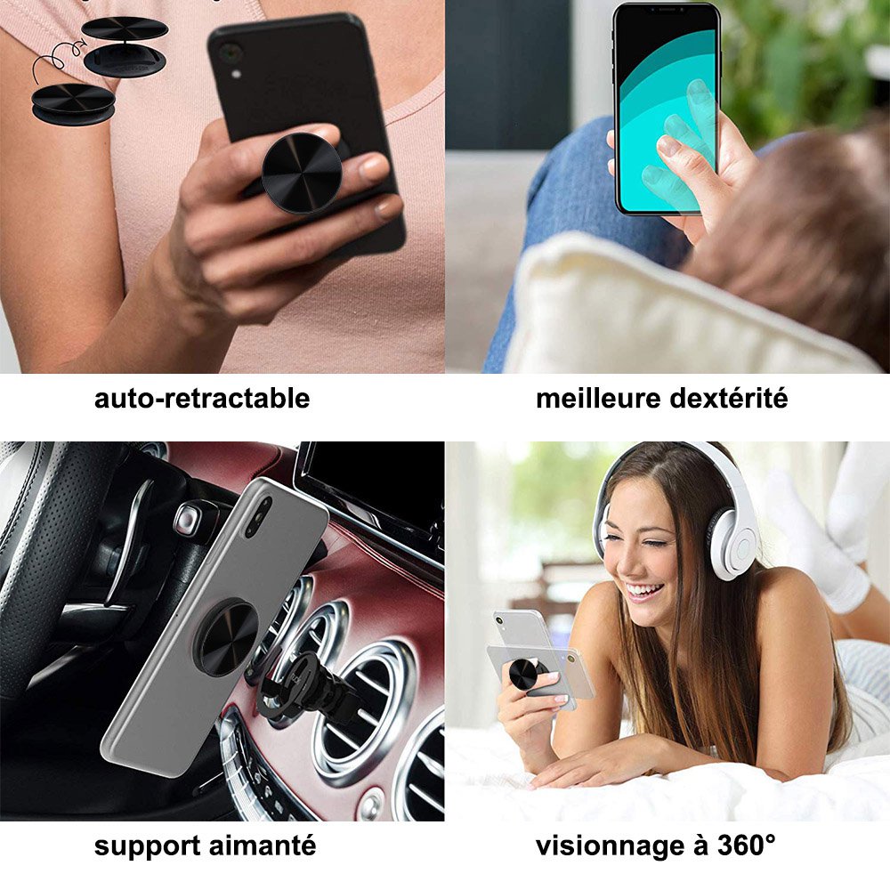 Ces poignées de téléphone brevetées stabilisent votre téléphone pendant les prises maladroites et garantissent une prise sûre sur n'importe quel appareil sans crainte de la chute redoutée ou d'un écran fissuré.