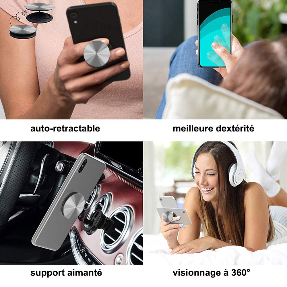 Ajoutez-le sur votre téléphone pour une visualisation verticale et horizontale des supports avec un support de verrouillage grâce à un système breveté qui vous permet de poser votre smartphone dans 4 directions.