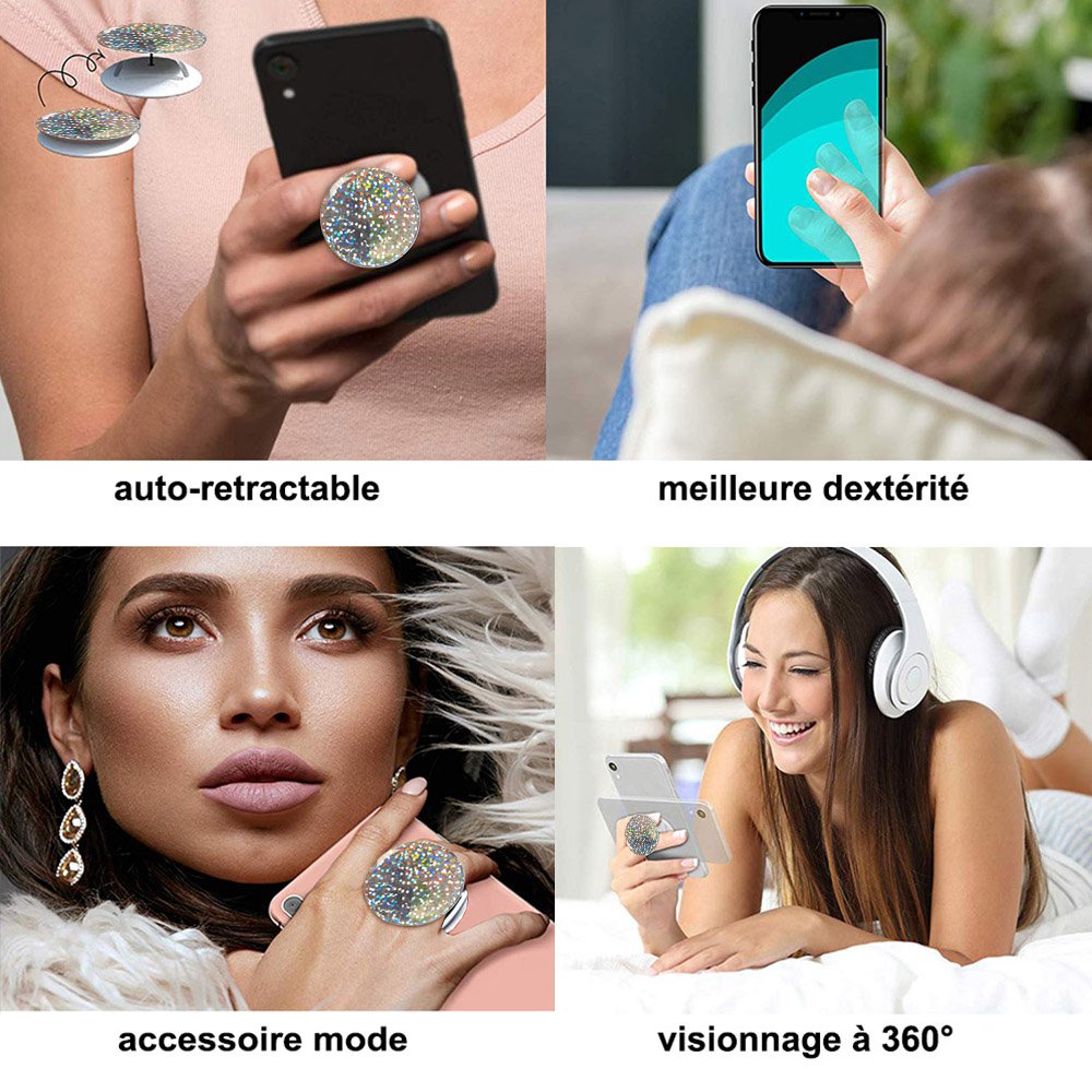 Ces poignées de téléphone brevetées stabilisent votre téléphone pendant les prises maladroites et garantissent une prise sûre sur n'importe quel appareil sans crainte de la chute redoutée ou d'un écran fissuré.