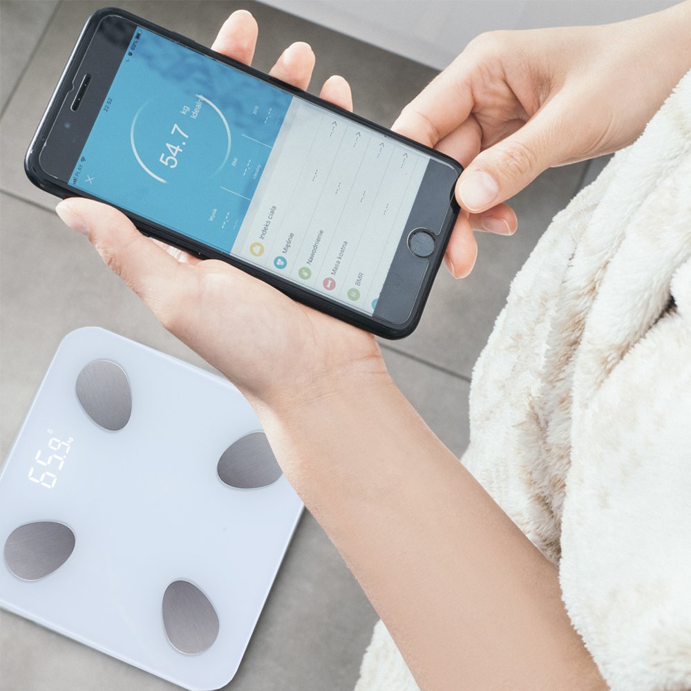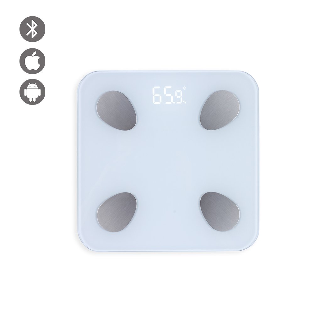 Pèse-personne connectéPermet de surveiller et enregistrer votre poids grâce à une application qui fonctionne via smartphone ou tablette13 indicateurs corporels possible (IMC, BMR, masse graisseuse, masse osseuse, masse hydrique, etc.)Plateau en verre trempéPesée jusqu’à 180 kg, graduation par 100 grEcran LEDMarche et arrêt automatique, indicateur d’usure de batteriePlateau en verre 28 x 28 cm