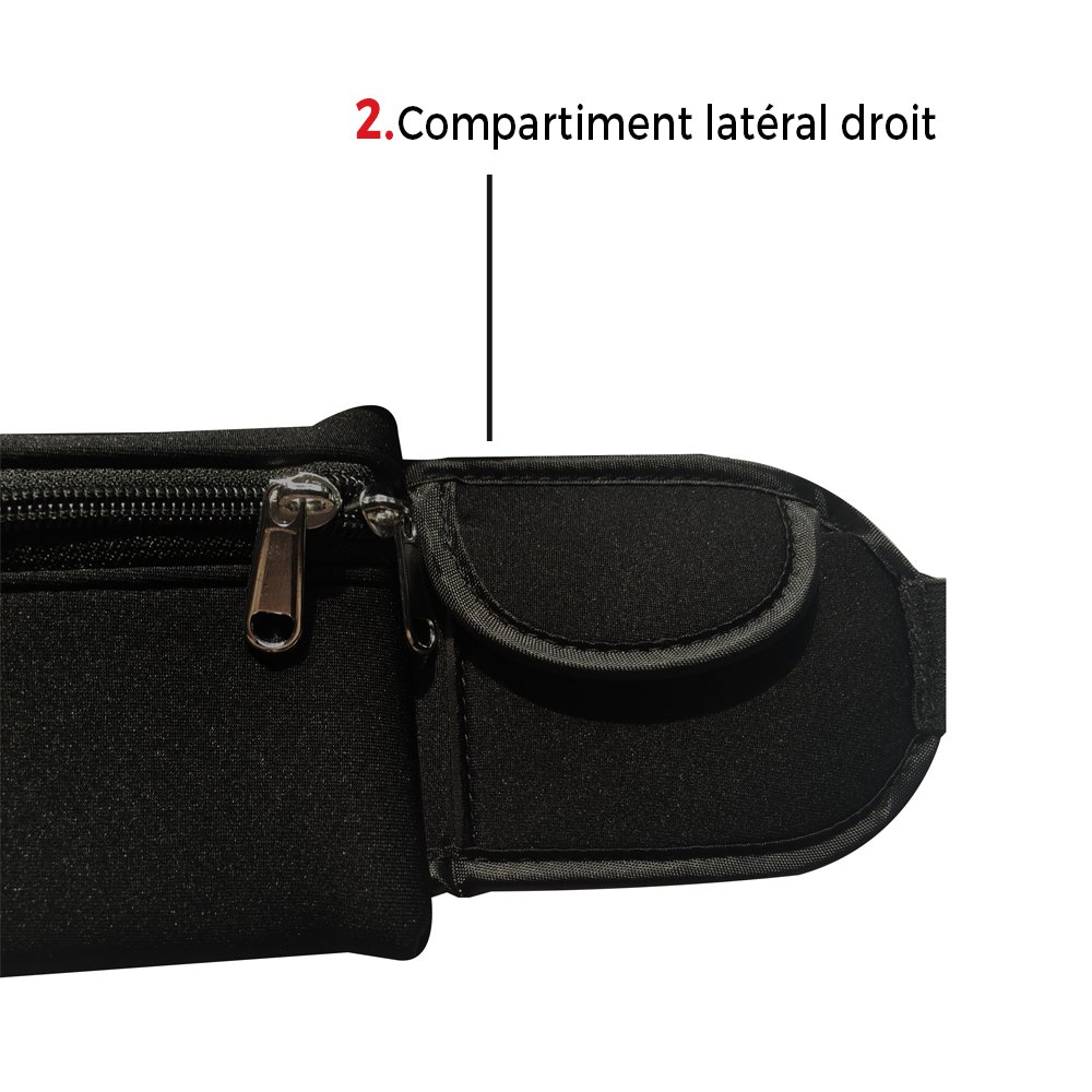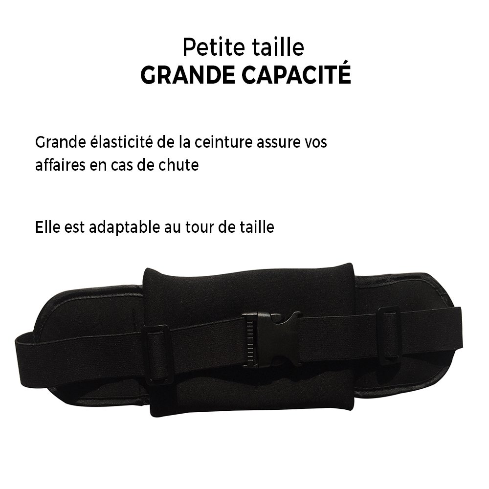 Deux compartiments de rangement. Système de ceinture réglable pour convenir au plus grand nombre. C'est l'accessoire indispensable qui vous accompagnera durant votre sport !
