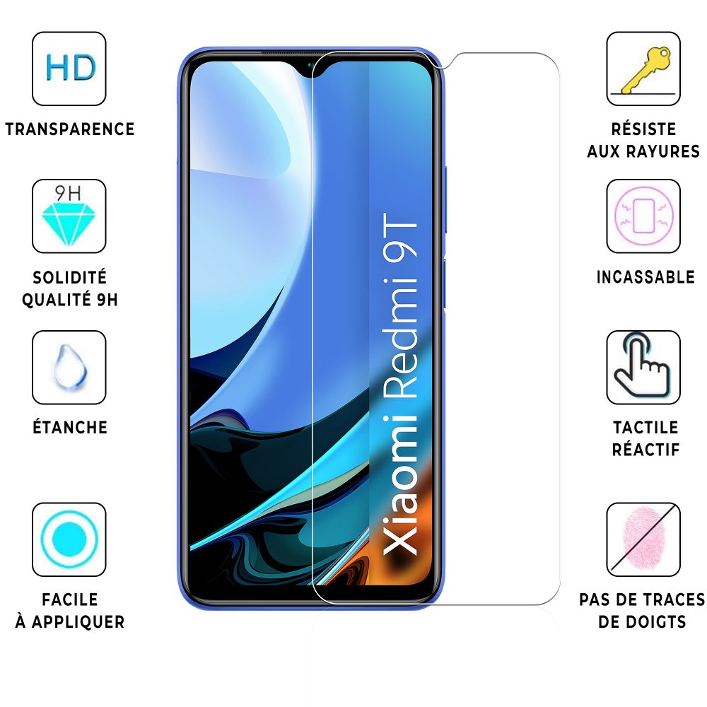 • > High Tech>Protection écran>Vitre Xiaomi Redmi 9T de protection en Verre trempé Protection ecran Ultra Resistant