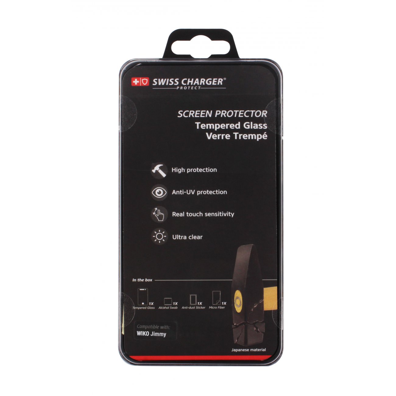 • > High Tech>Protection écran>Swiss charger film de protection verre trempé Wiko Jimmy