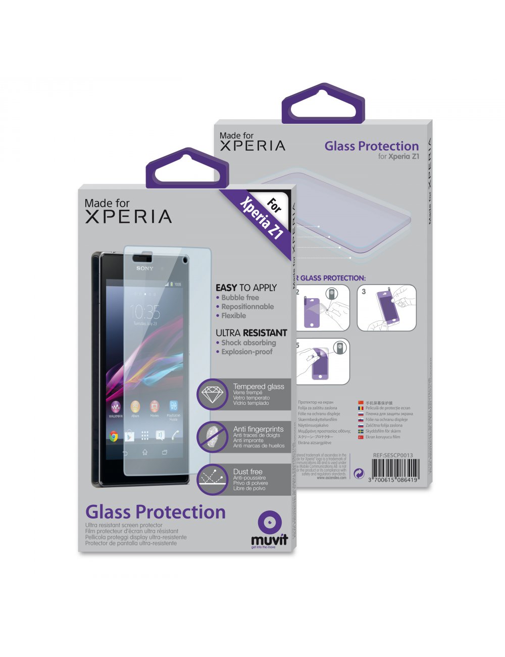 Muvit protection d'écran en verre trempé pour Sony Xperia Z1