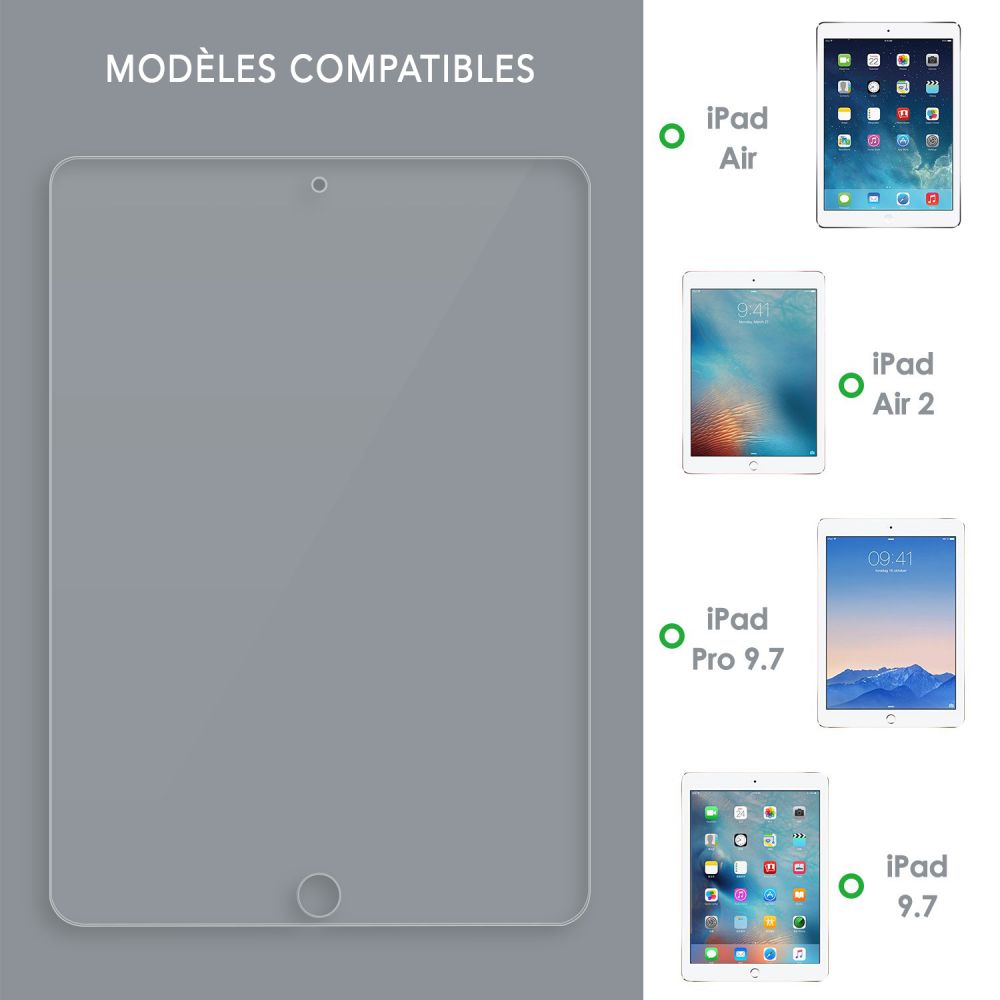 • Vitre de protection iPad Air/Air 2: A1474-A1475-A1476-A1566-A1567