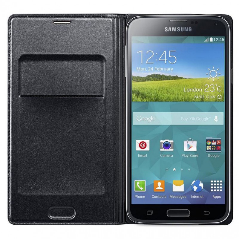 Etui Folio Samsung Galaxy S5 Wallet noir - - Design original - Matière PU - Rangement carte de visite à l'intérieur de l'étui - Mise en veille automatique lors de la fermeture de l'étui