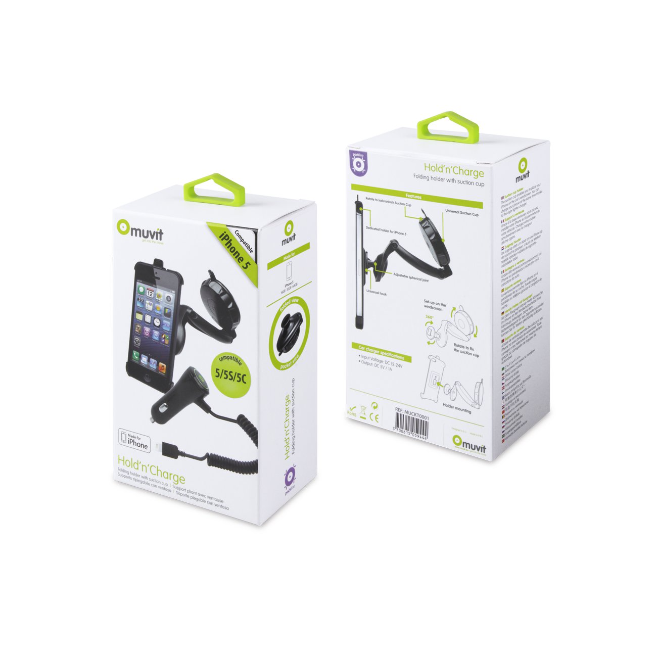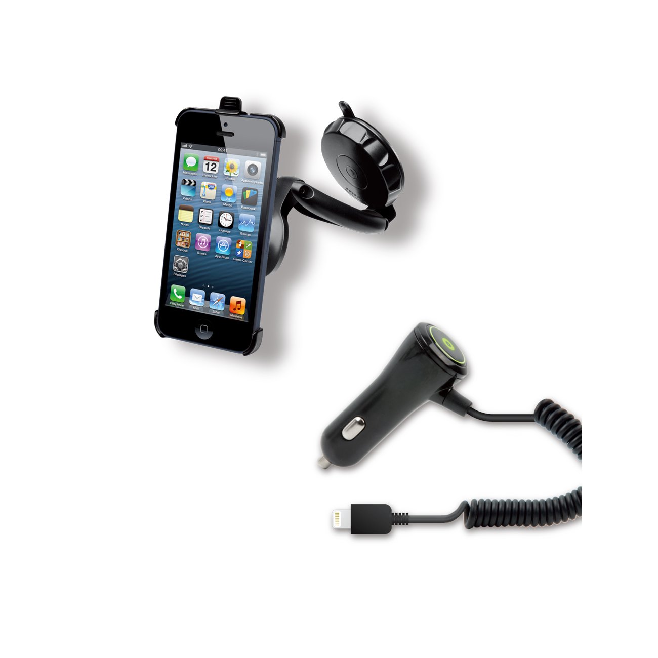 Muvit support voiture ventouse & grille + chargeur allume-cigare 1A pour iPhone 5 / 5S