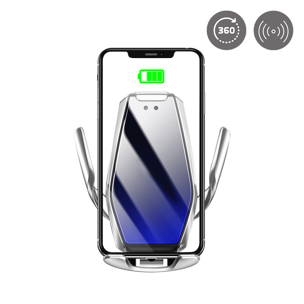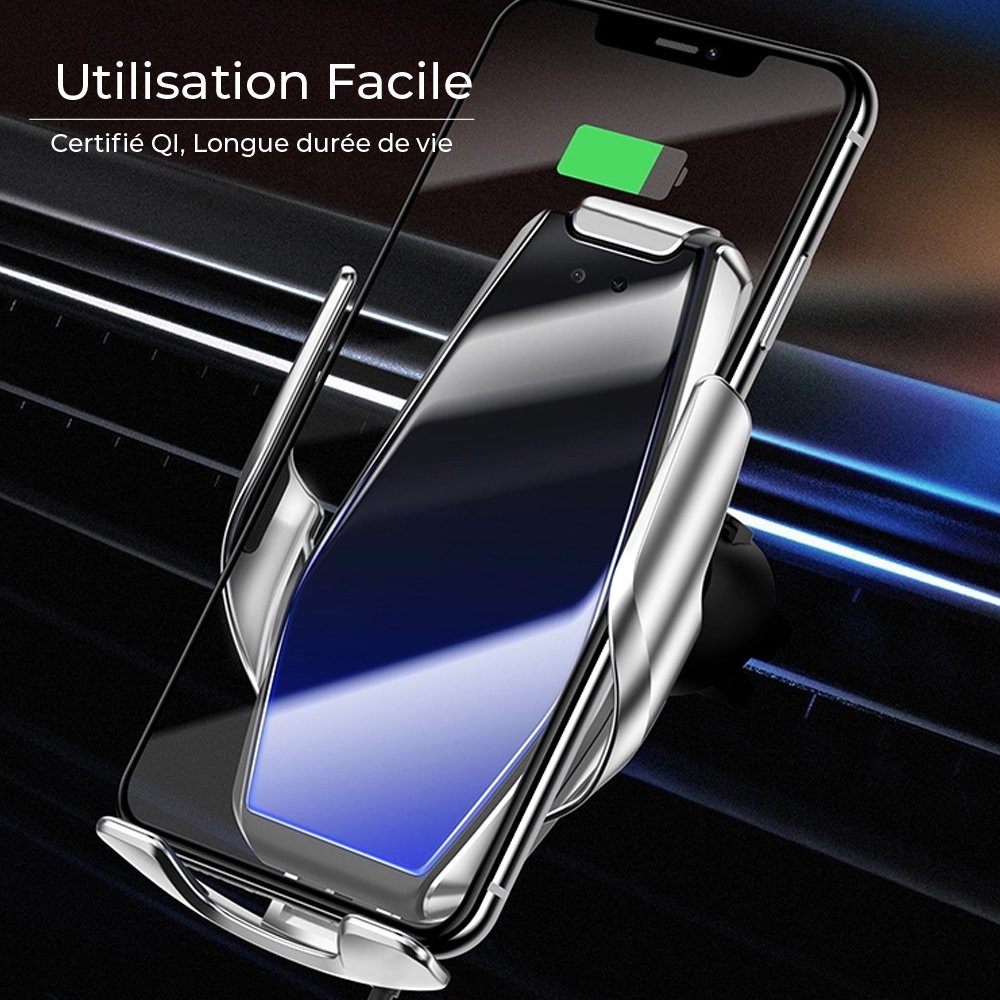Support voiture de téléphone avec détetection automatique et  charge à induction 15W argent