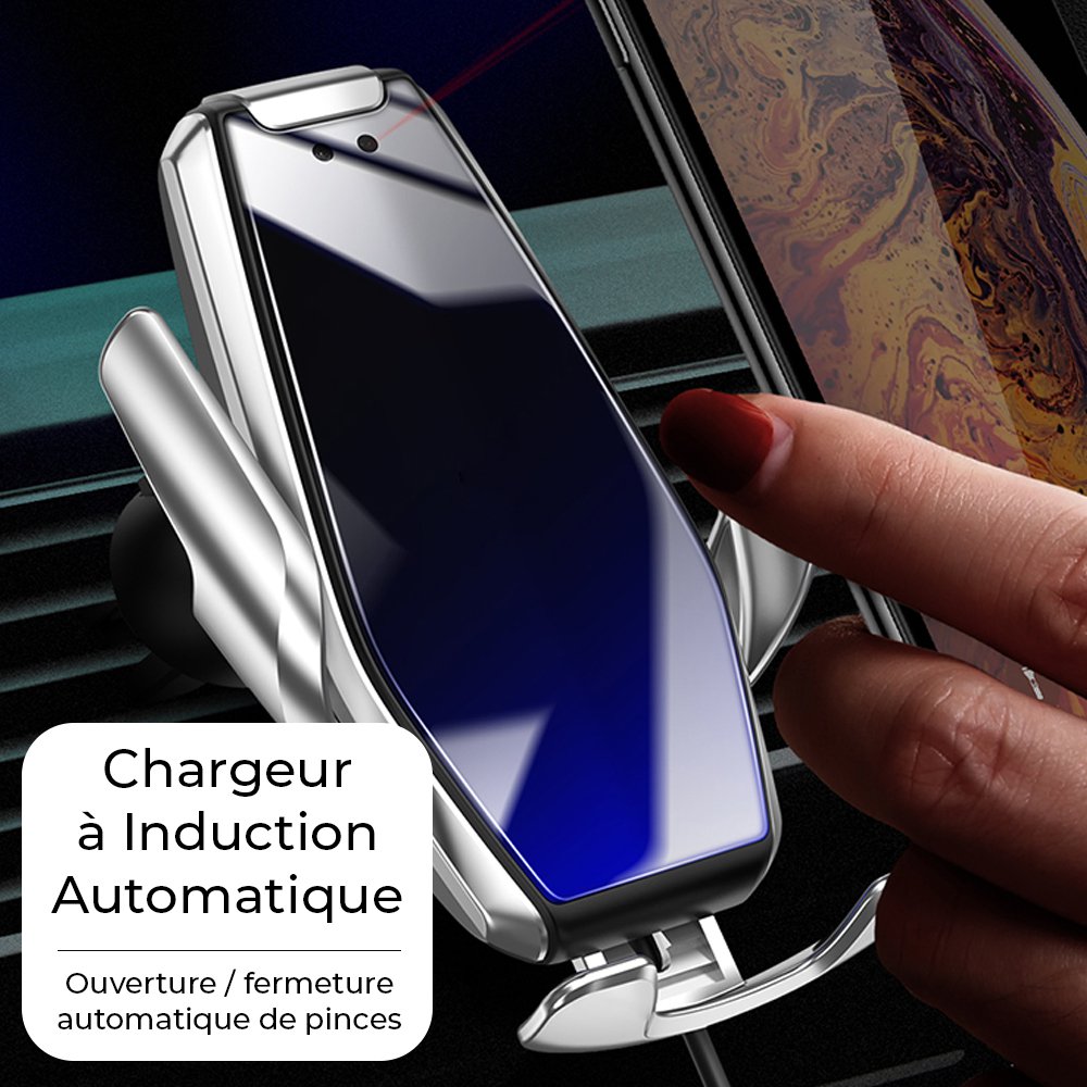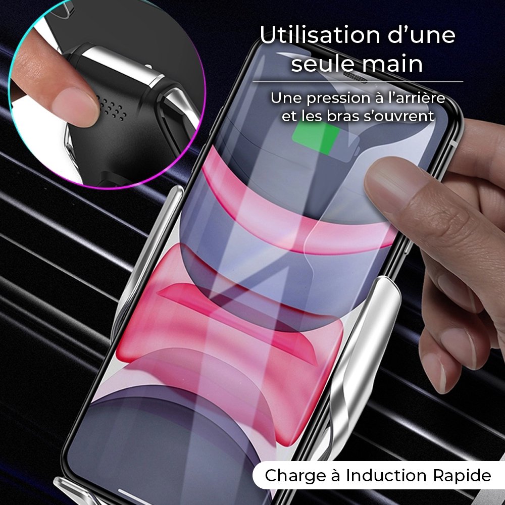 • Support voiture de téléphone avec détetection automatique et  charge à induction 15W argent
