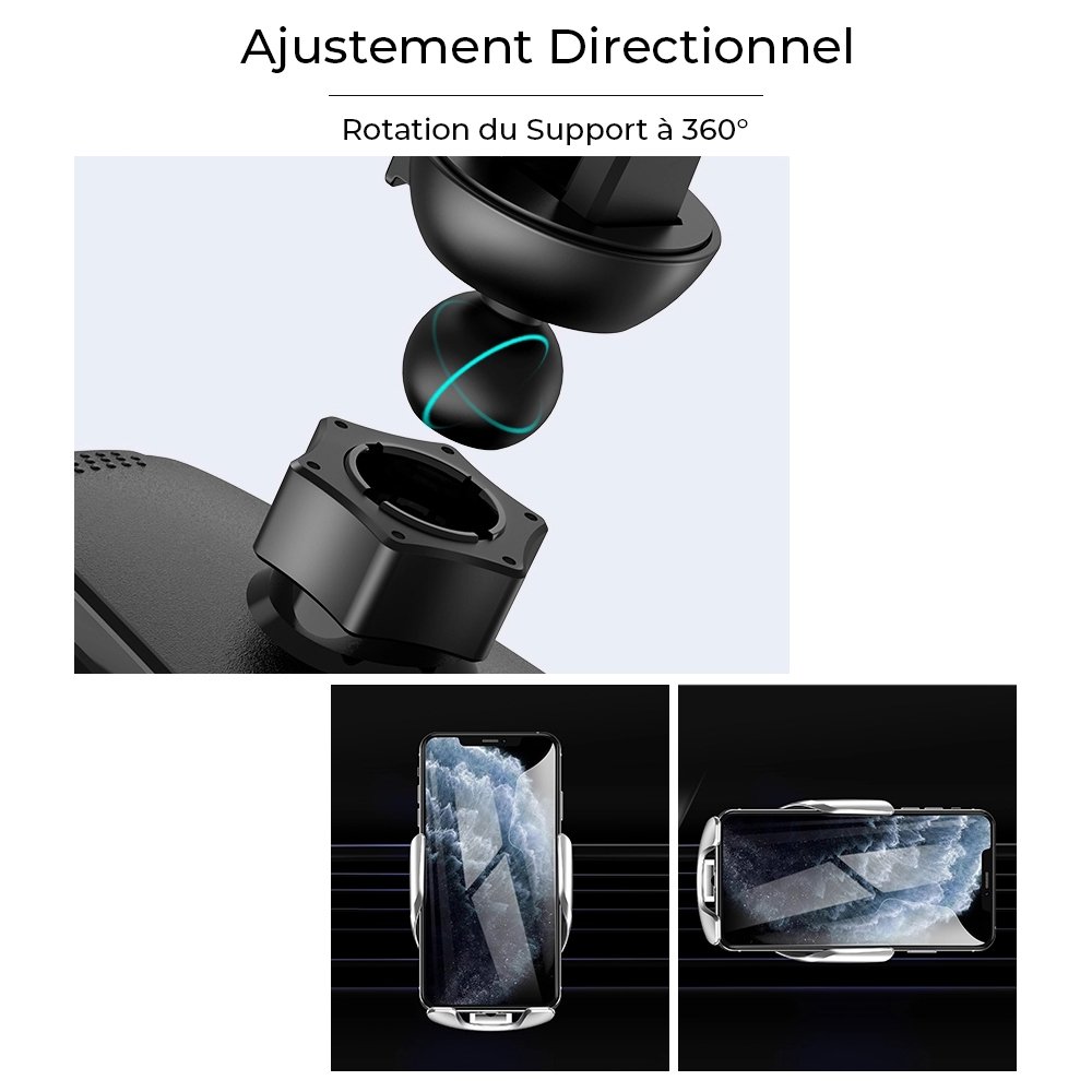• Support voiture de téléphone avec charge à induction pour voiture rotatif 360° noir