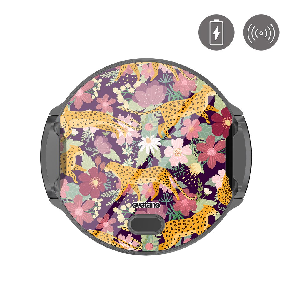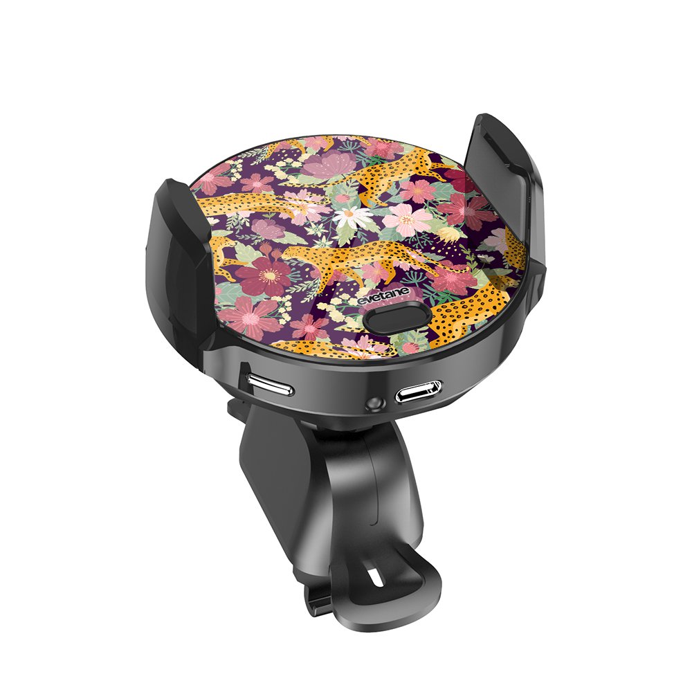 Support voiture avec charge à induction Léopard et Fleurs Evetane