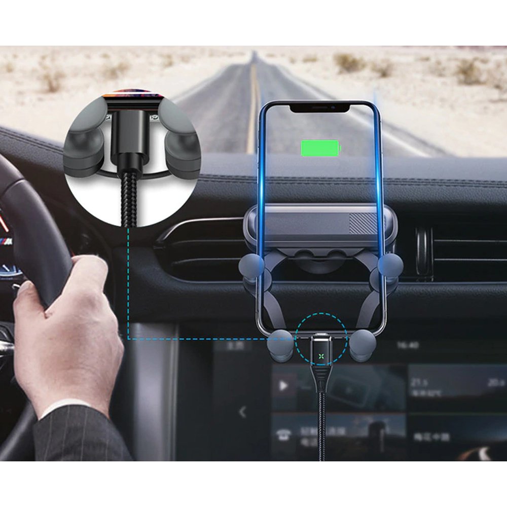 • Support voiture de téléphone avec détetection automatique et  charge à induction 15W argent