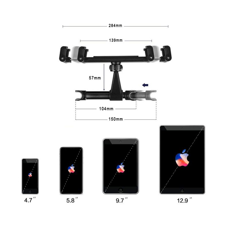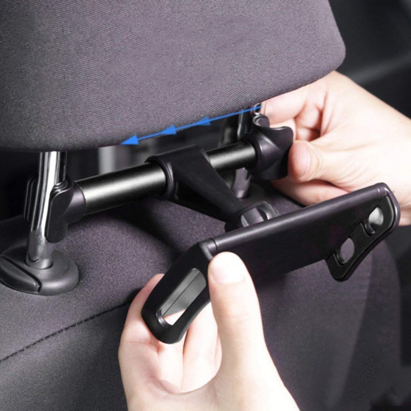 Ce support pour dossier de siège de voiture est compatible avec tous les téléphones et tablettes de 12 à 20 cm, tels que iPhone, iPad, Samsung, Sony, liseuse, etc...Rotatif : Le support de téléphone permet une rotation sur 360 °, ce qui vous permet de l'adapter à tout angle pour regarder des vidéos, jouer à des jeux, lire, etc.Installation facile : La barre du support est réglable, il vous suffit d'appuyer sur le côté rétractable et il peut être facilement installé sur l’appuie-tête.Libérez vos mains : Avec ce support dans votre voiture, vous pouvez choisir n'importe quel angle pour un visionnage ultime et savourer des collations en même temps.Crochets pour appuie-tête : Ces crochets permettent d’économiser de l'espace. Vous pouvez y accrocher sacs à main, sacs d'épicerie, parapluies, bouteilles d'eau, sacs de shopping et plus encore.
