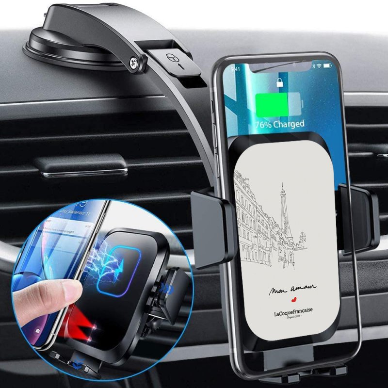 Support voiture avec charge à induction Amour Parisien Motif Ecriture Tendance La Coque Francaise