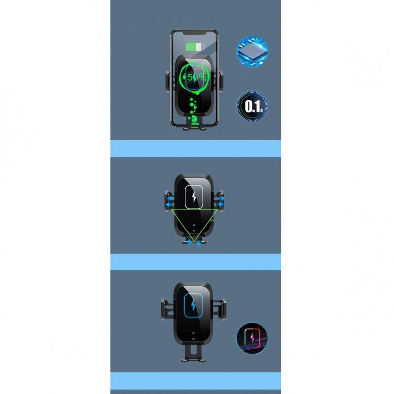 • Support voiture de téléphone avec détetection automatique et  charge à induction 15W argent
