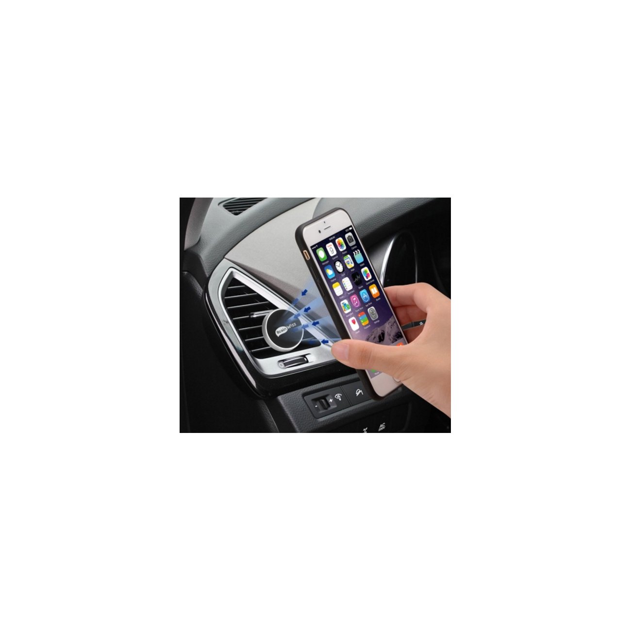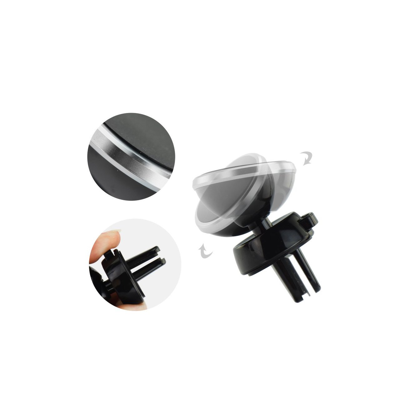La pince dentée en caoutchouc offre un support sur votre grille d'aération à la fois ferme et garantie sans rayures.