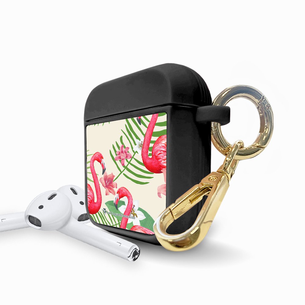 Housse pour airpods silicone liquide noir Flamants Rose Motif Ecriture Tendance La Coque Francaise