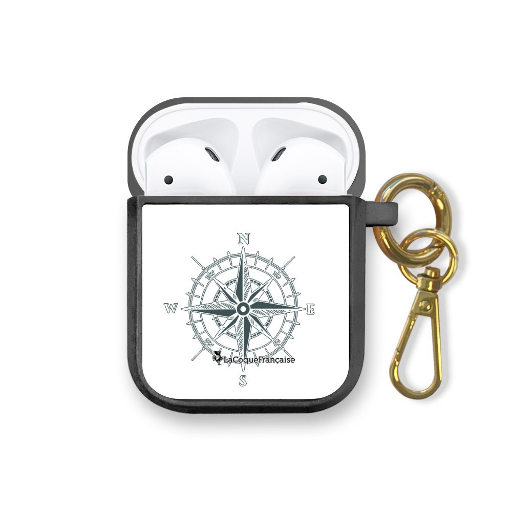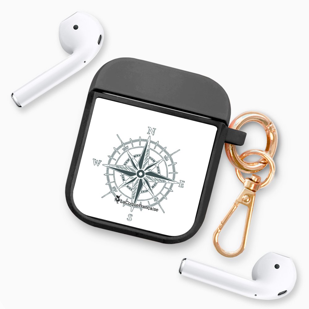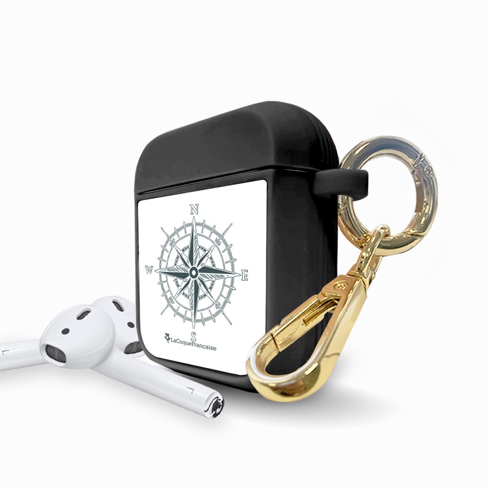 Housse pour airpods silicone liquide noir Boussole Motif Ecriture Tendance La Coque Francaise