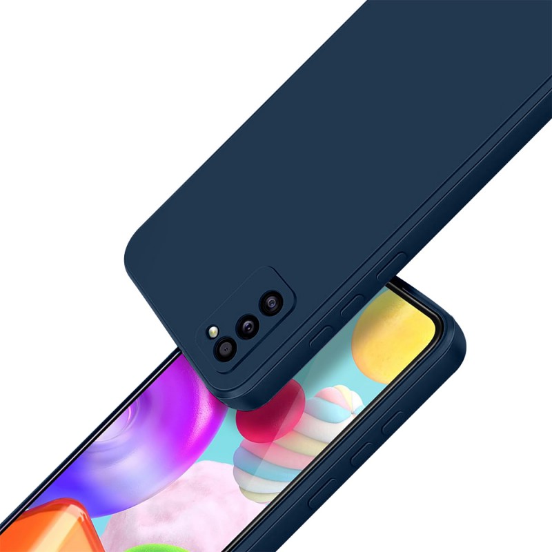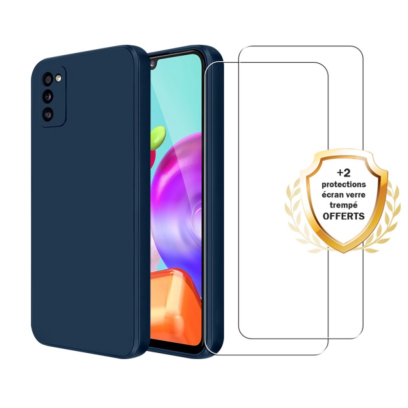 • > High Tech>Coque + 2 Vitres Offertes >Coque Samsung Galaxy A41 Silicone liquide Bleue Marine + 2 Vitres en Verre trempé Protection écran Antichocs